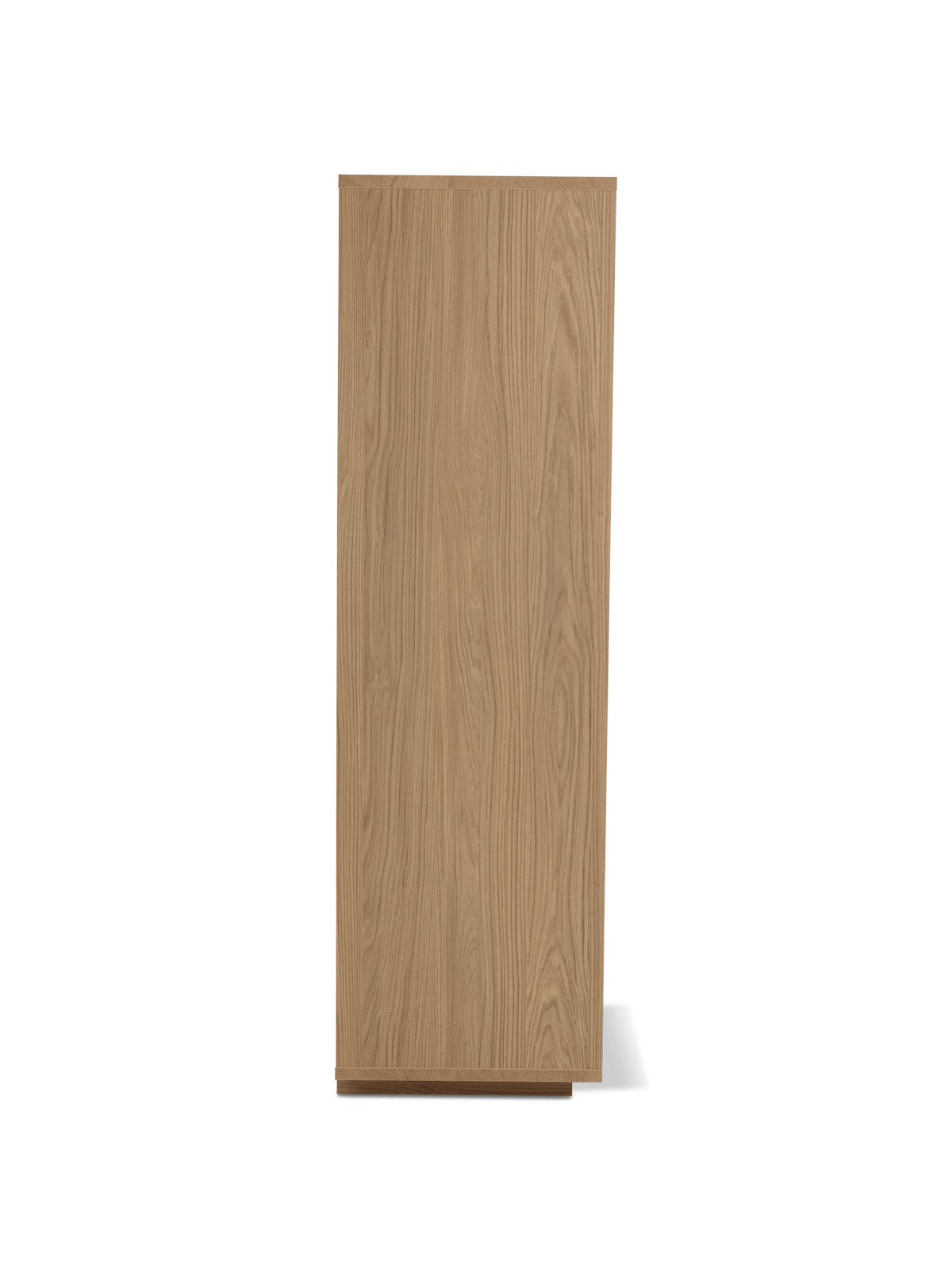 De barkast Yamato (B120 × H154 × D45 cm) belichaamt de kracht van eenvoud. De uitvoering in Lamulux Blond Oak brengt een warme, natuurlijke uitstraling in huis en accentueert het pure lijnenspel van het ontwerp. Deze kast ademt rust en harmonie — een toonbeeld van stille luxe voor interieurs waar balans centraal staat.