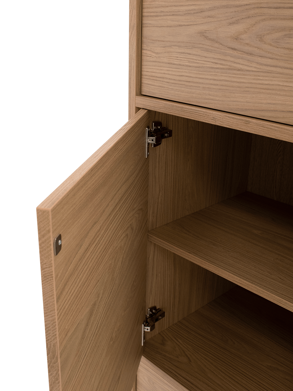 Dankzij zijn smalle, hoge vorm is Yamato ideaal voor wie elegantie wil combineren met ruimtebesparend design. In de woonkamer, eetkamer of hal vormt deze wandkast een subtiel blikvanger die rust brengt en harmonie toevoegt aan het geheel.