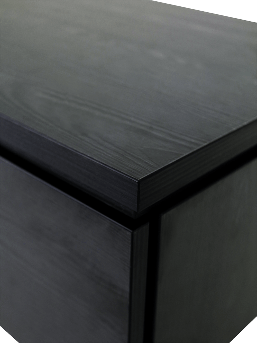 Het Milton tv-meubel in de kleur Noir brengt tijdloze elegantie en eigentijdse verfijning samen. De diepe zwarte houttint met subtiele nerfstructuur creëert een krachtige, maar serene uitstraling — perfect voor interieurs die rust, contrast en stille luxe combineren. De matte afwerking zorgt voor een zachte, warme reflectie die het meubel extra diepte geeft.