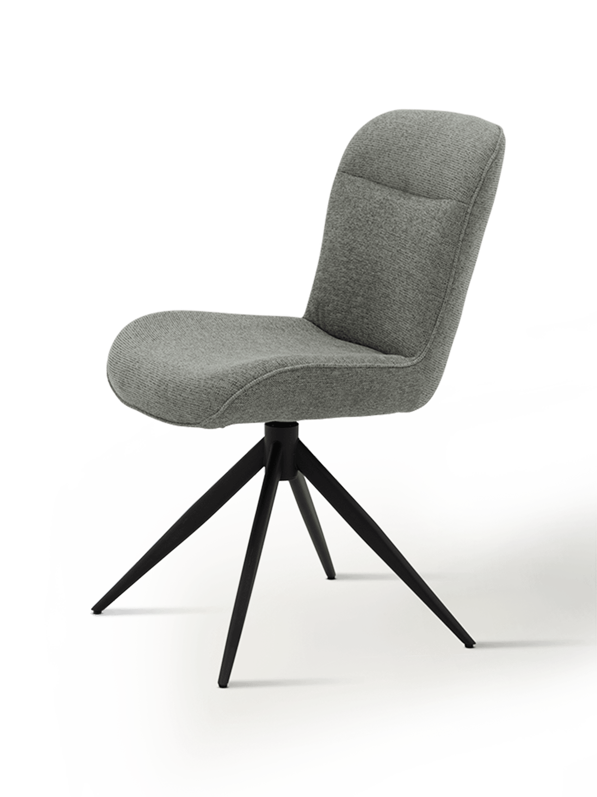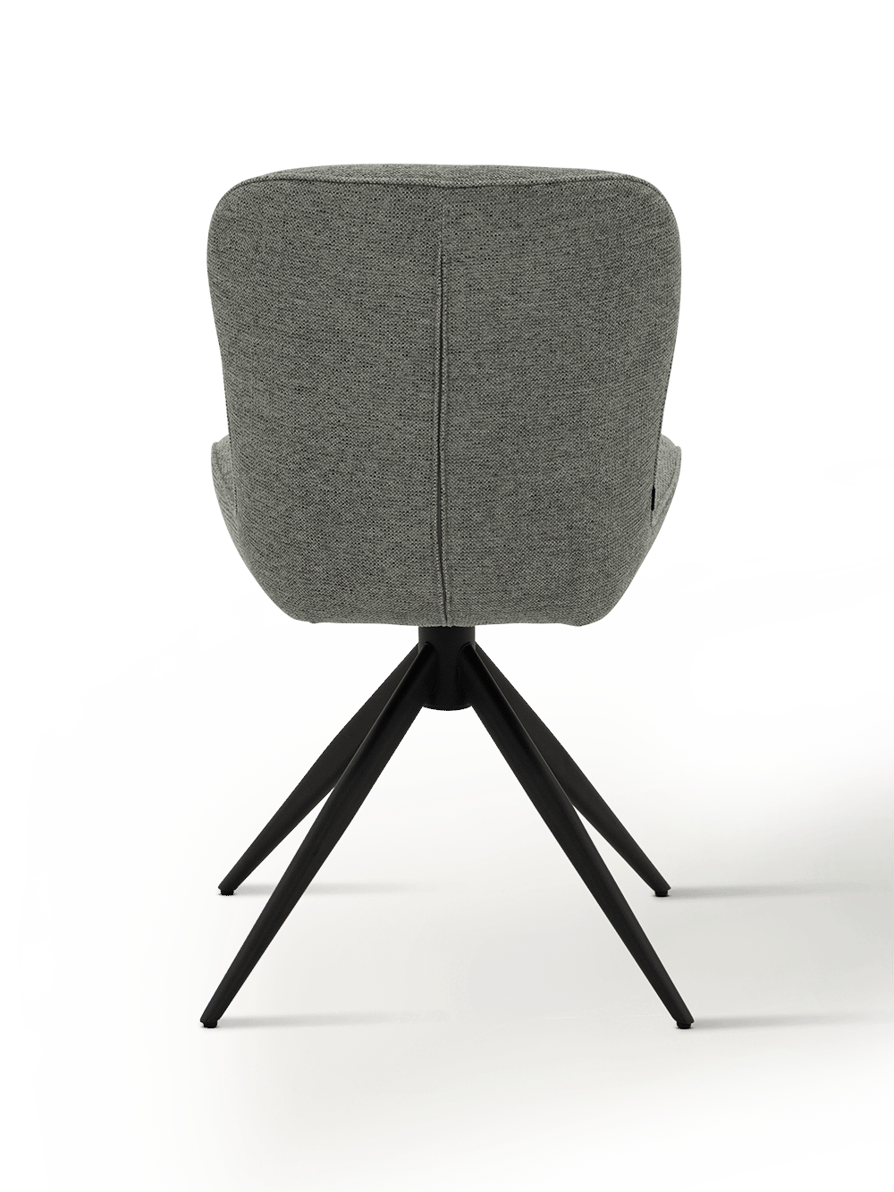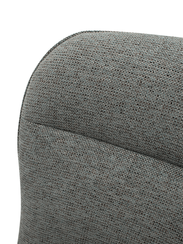 Stoel Halina straalt rust uit met zijn elegante lijnen en zachte bekleding. De subtiel afgeronde vormen zorgen voor een uitnodigende uitstraling, terwijl de neutrale grijstint van de stof naadloos past in uiteenlopende interieurs.