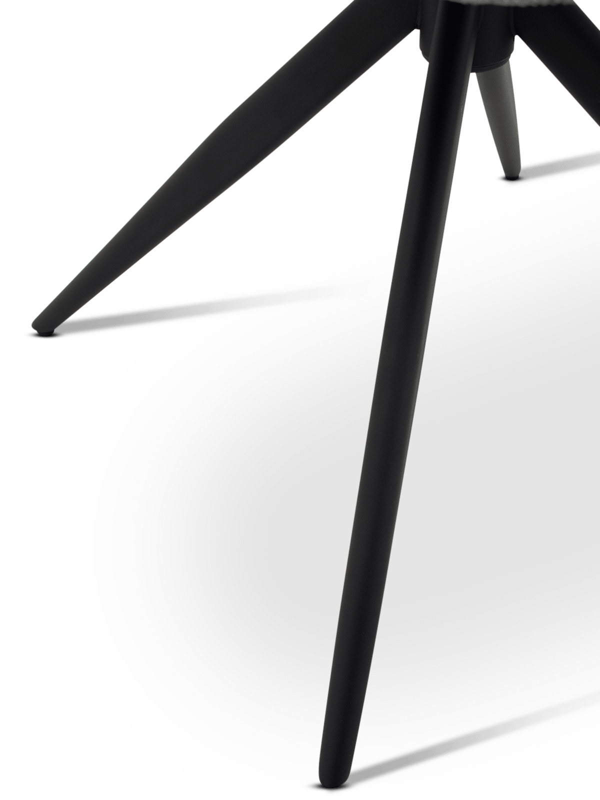 De Halina stoel onderscheidt zich door zijn moderne silhouet op een stabiel zwart metalen onderstel. De ergonomische zitting biedt een aangename ondersteuning, ideaal voor lange diners of gezellige momenten aan tafel.