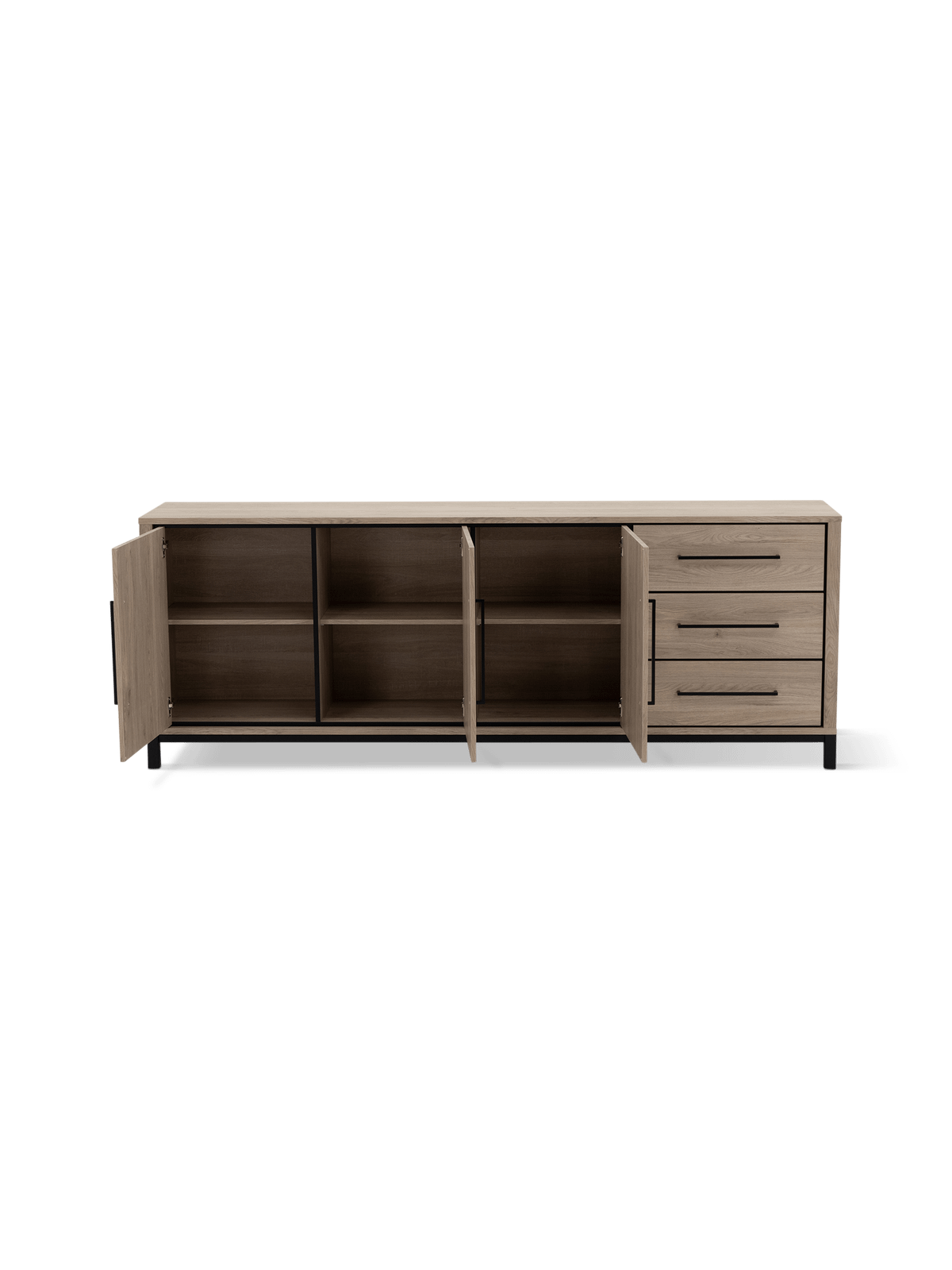 Met drie deuren en drie lades biedt dit dressoir een ruime en overzichtelijke opbergoplossing. Ideaal voor het netjes opbergen van servies, documenten of andere dagelijkse spullen. Dankzij het softclose systeem sluiten zowel de deuren als de lades geruisloos en comfortabel.