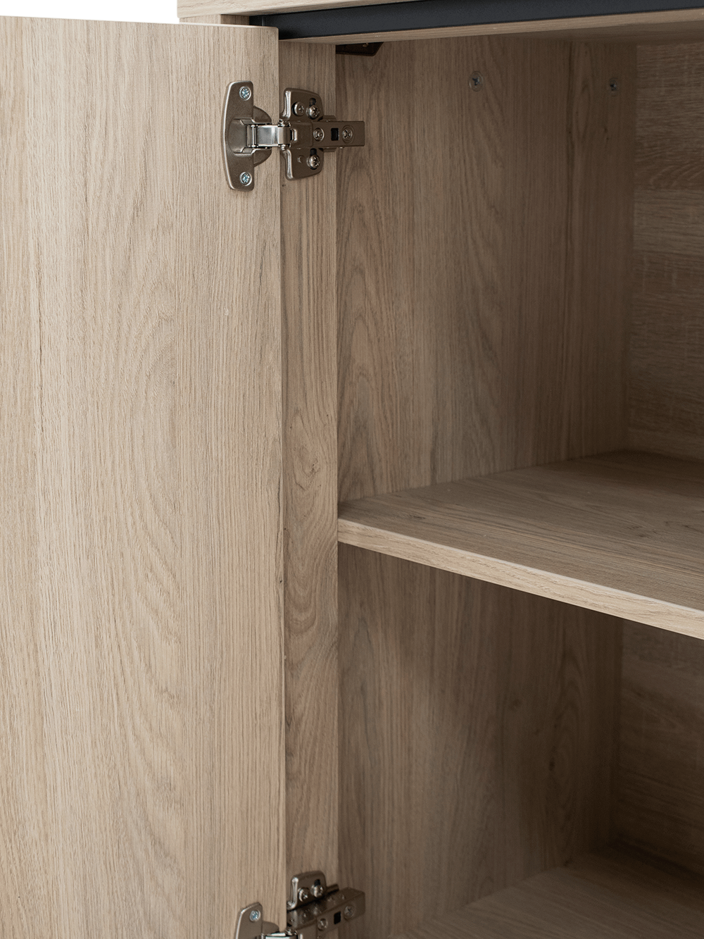 De afwerking in lamulux houtlook in de kleur Old oak geeft het meubel een warme, natuurlijke uitstraling met de voordelen van moderne materialen. Lamulux staat bekend om zijn gebruiksgemak en duurzaamheid: