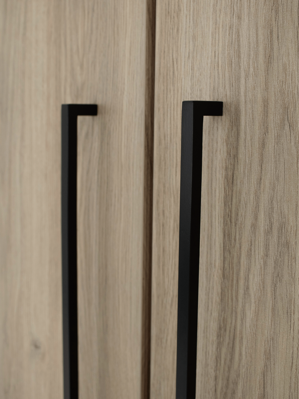 De deuren en lades zijn uitgerust met softclose, zodat ze steeds zacht en geruisloos sluiten. Dat zorgt niet alleen voor extra comfort, maar draagt ook bij aan de duurzaamheid van het meubel.