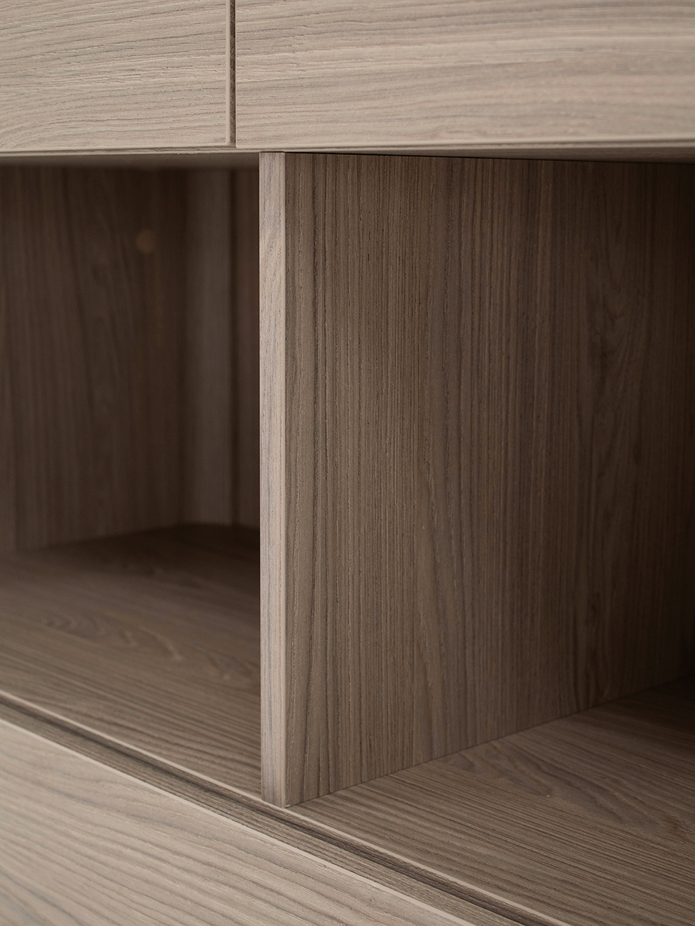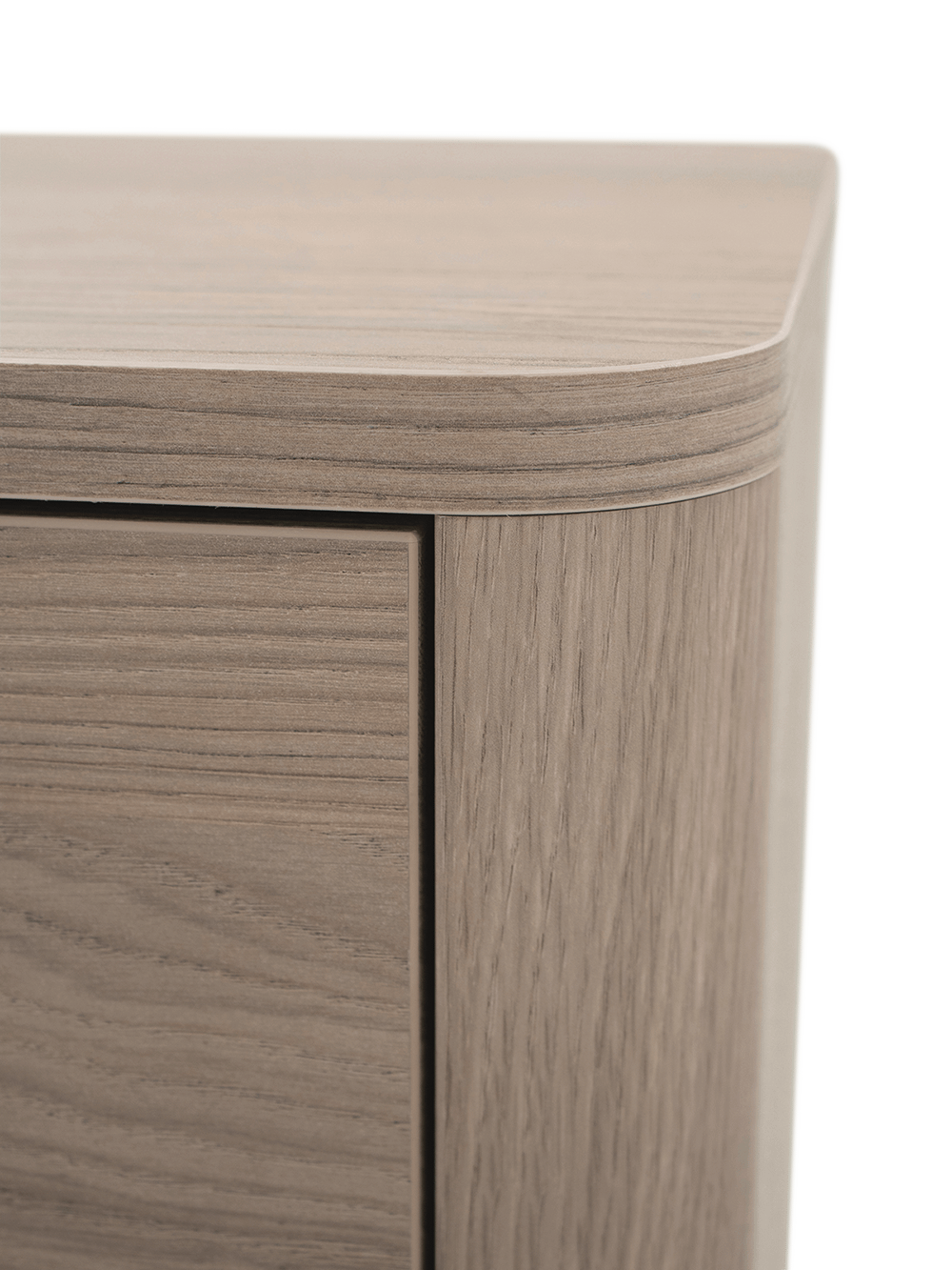 - Afwerking in lamulux, kleur misty oak met deurfront in stone grey