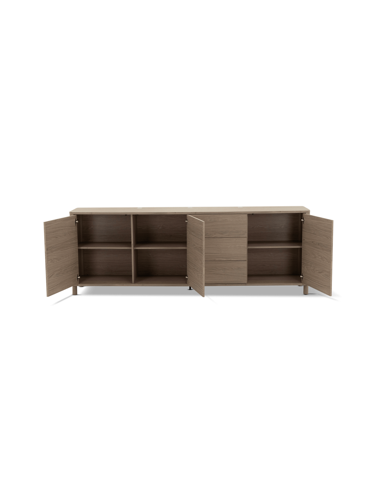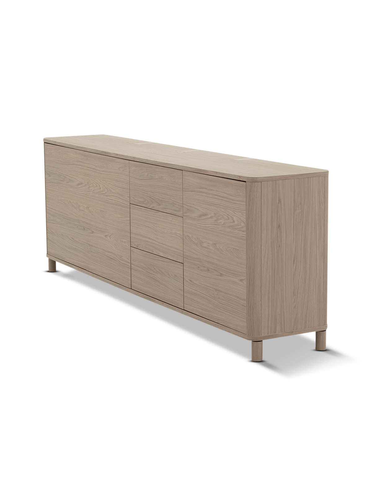 De dressoir is uitgevoerd in lamulux, een duurzaam materiaal dat de natuurlijke schoonheid van hout combineert met praktisch onderhoudsgemak. Misty oak zorgt voor een warme, natuurlijke look zonder de gevoeligheid van echt hout. Het oppervlak is krasbestendig, kleurvast en eenvoudig te reinigen – ideaal voor dagelijks gebruik.
