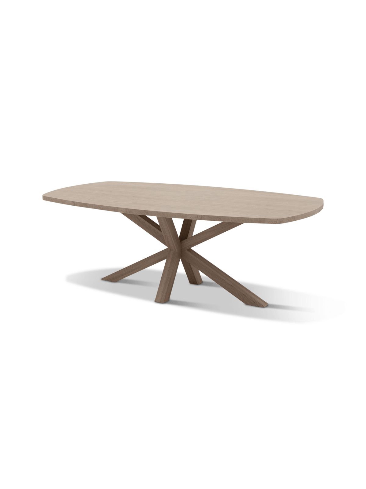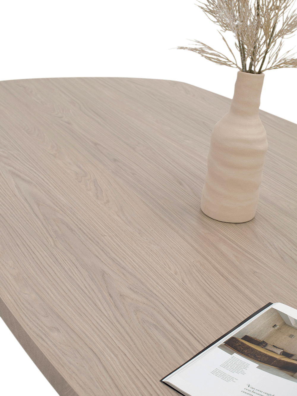 Eettafel Nevada combineert een verfijnd design met een warme, natuurlijke look. De Deens ovale vorm zorgt voor zachte lijnen en een uitnodigend karakter, waardoor de tafel perfect past in een modern en sfeervol interieur. Dankzij deze vorm creëer je bovendien een gezellige setting waarin iedereen makkelijk met elkaar in contact staat.