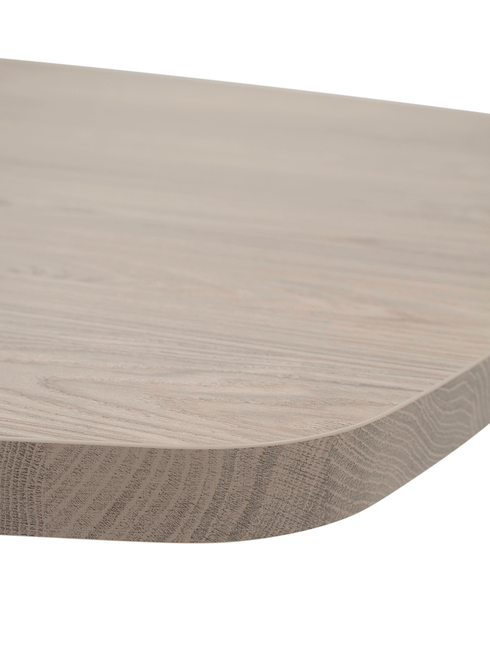 Zowel het tafelblad als de poten zijn afgewerkt in lamulux Misty Oak, wat zorgt voor een mooi, uniform geheel. De subtiele houttekening en de zachte kleurtint geven de tafel een natuurlijke en rustige uitstraling die makkelijk te combineren is met verschillende stoelen en interieurstijlen.