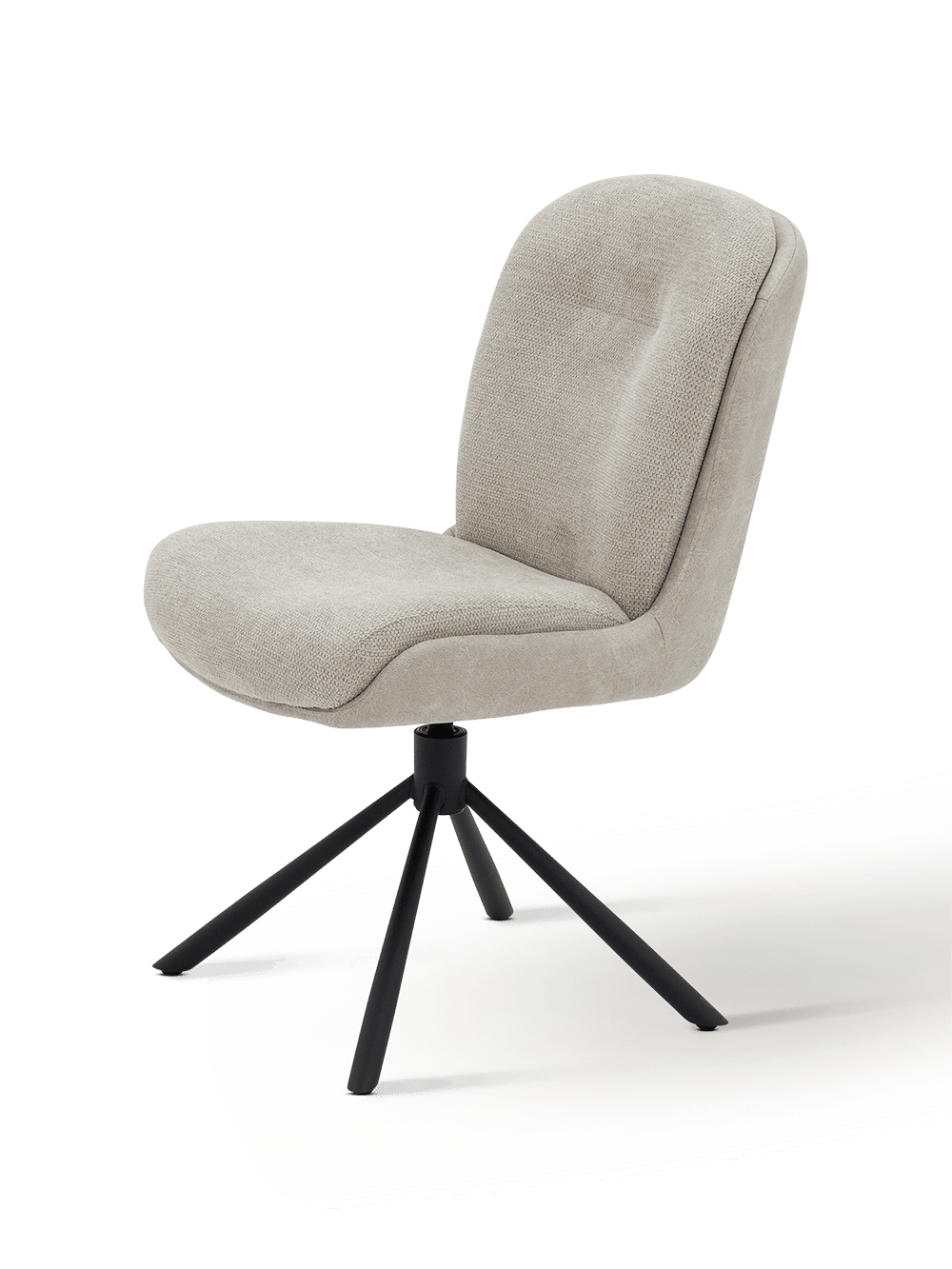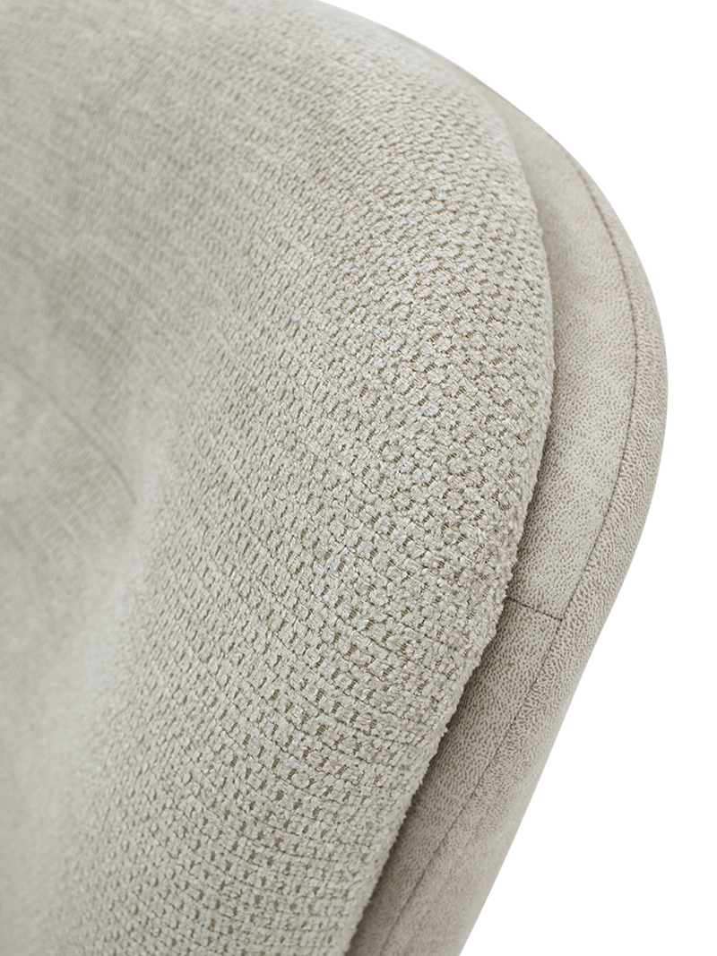 De stoel met draaipoot Boldi combineert een eigentijds design met een uitnodigend zitcomfort. De afgeronde vormen en de zachte, licht beige stoffering zorgen voor een warme en gezellige uitstraling in jouw interieur.