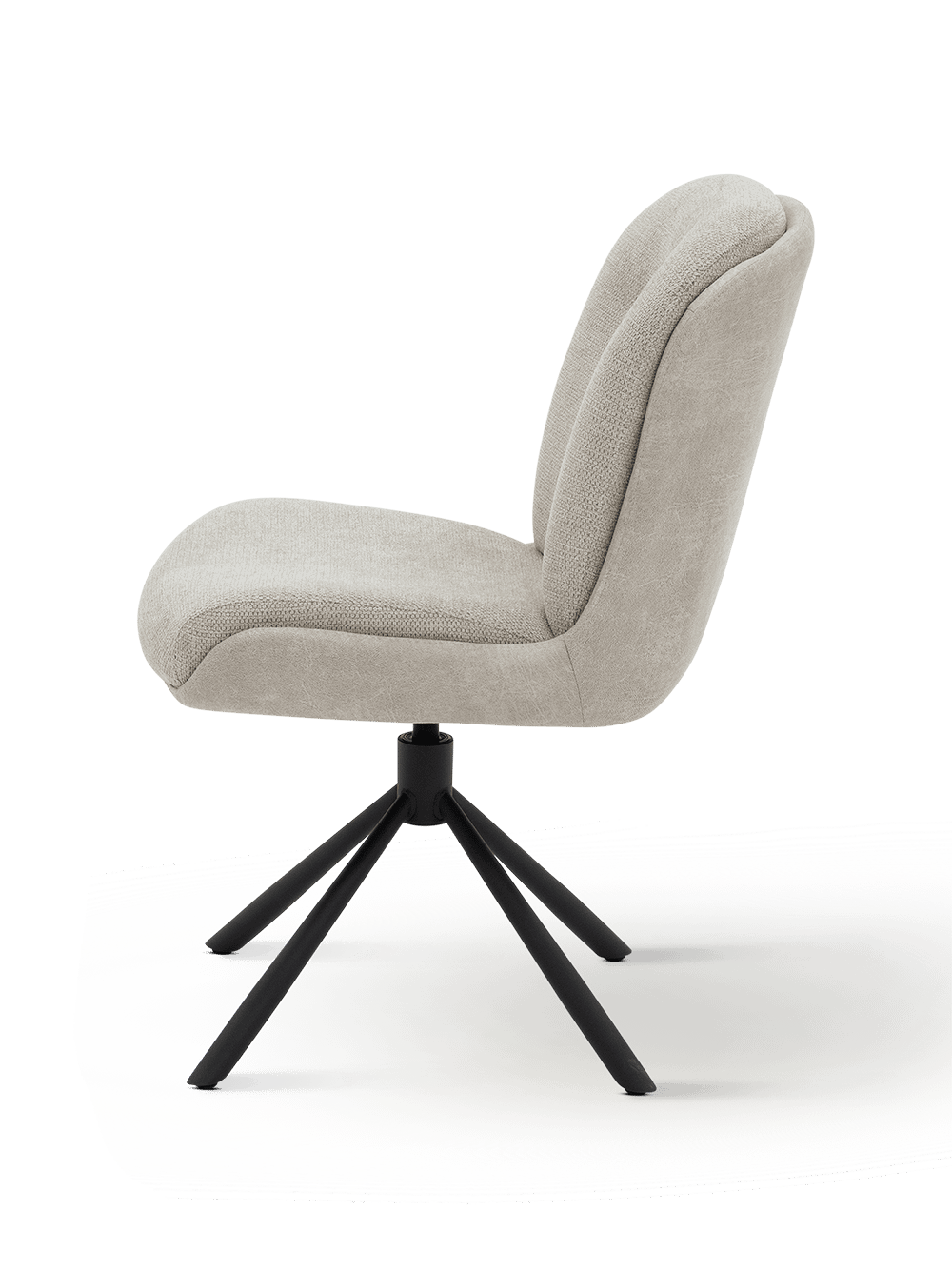Dankzij de praktische draaipoot geniet je van extra flexibiliteit in het dagelijks gebruik. De stoel draait vlot mee, wat hem bijzonder handig maakt tijdens lange tafelmomenten of wanneer je gemakkelijk wil opstaan en aanschuiven. De stevige metalen poot in zwarte afwerking zorgt bovendien voor een stabiele en moderne basis.