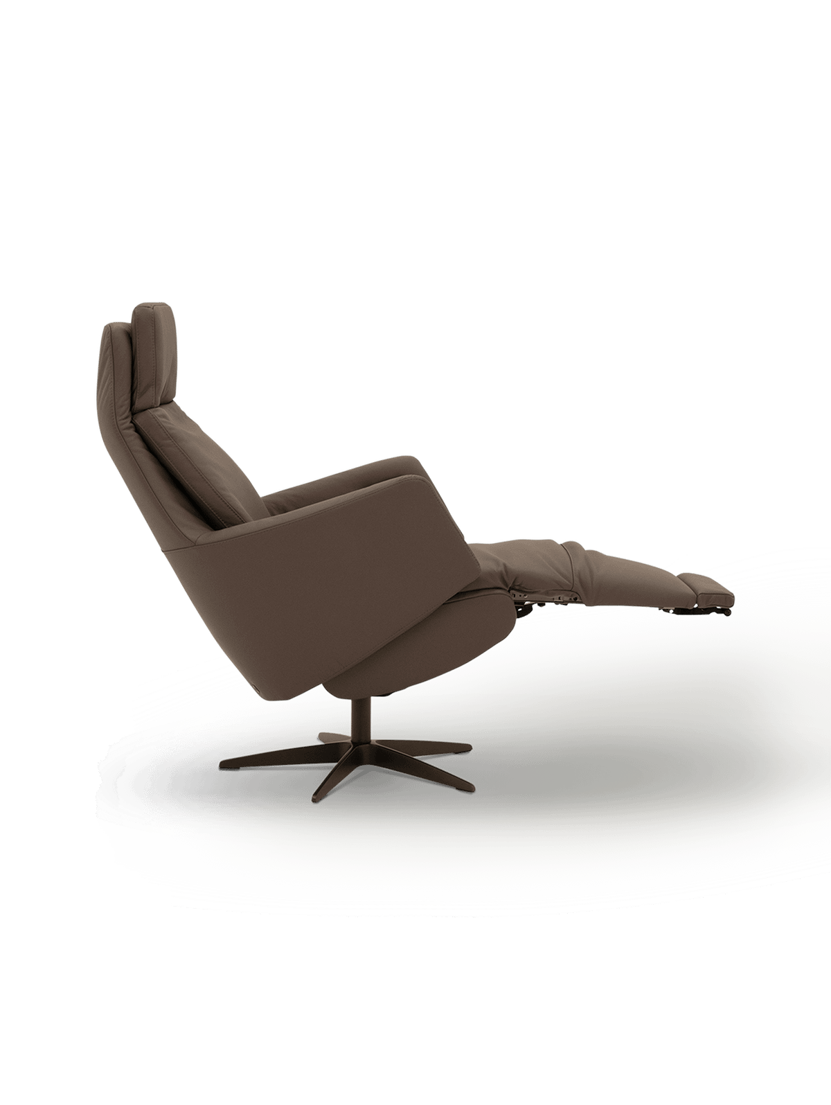 De Fold XL is uitgerust met een 3-motorig relaxmechanisme met accu, waarmee rug, voetensteun en Hart-Balans functie afzonderlijk bediend worden via intuitieve tiptoetsen. Deze unieke functie brengt het lichaam in een optimale rustpositie, waarbij het hart minimaal wordt belast en de bloedsomloop wordt gestimuleerd — voor een gevoel van gewichtloos comfort. De retourknop brengt alle functies met één druk soepel terug naar de beginstand, wat het gebruik nog eenvoudiger maakt.