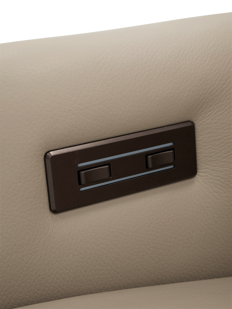 Dankzij de geïntegreerde accu gebruik je alle functies zonder storende kabels. De bediening is subtiel verwerkt in de armleuning en zorgt voor een eenvoudige en intuïtieve bediening, zodat je in alle rust kan genieten van jouw relaxmoment.