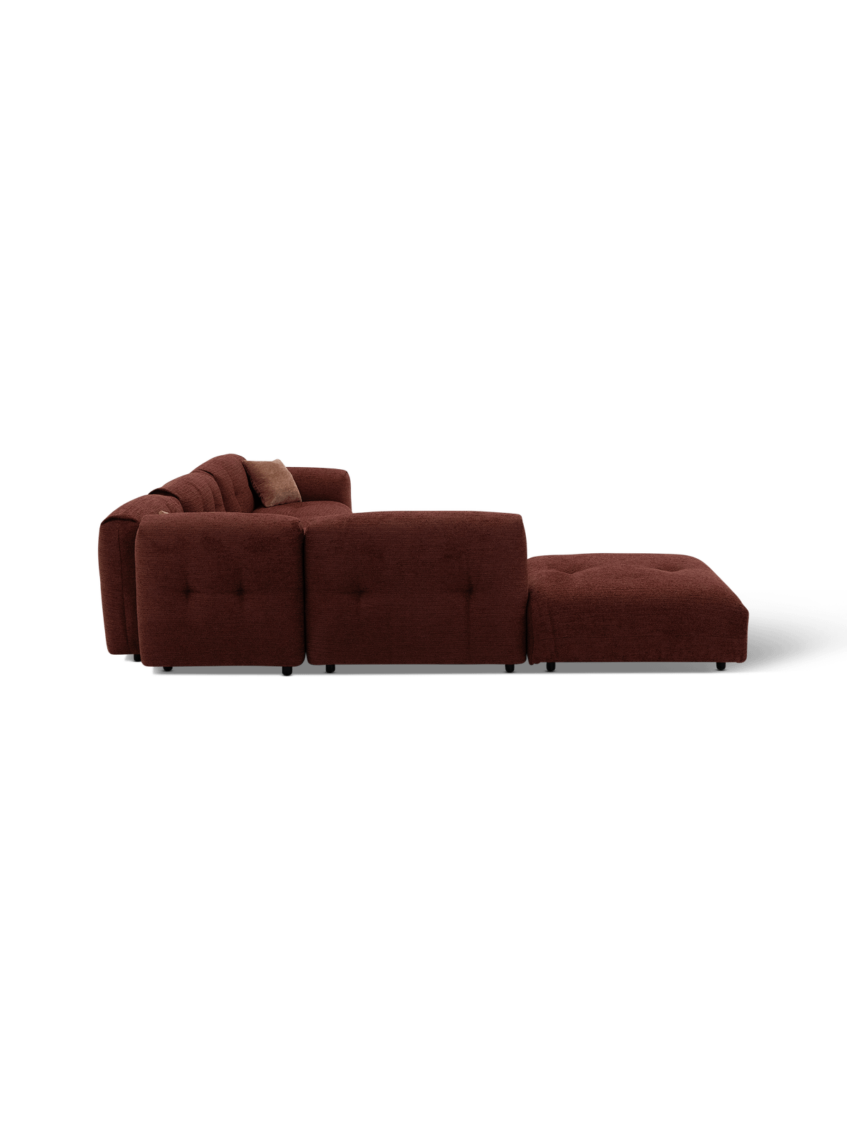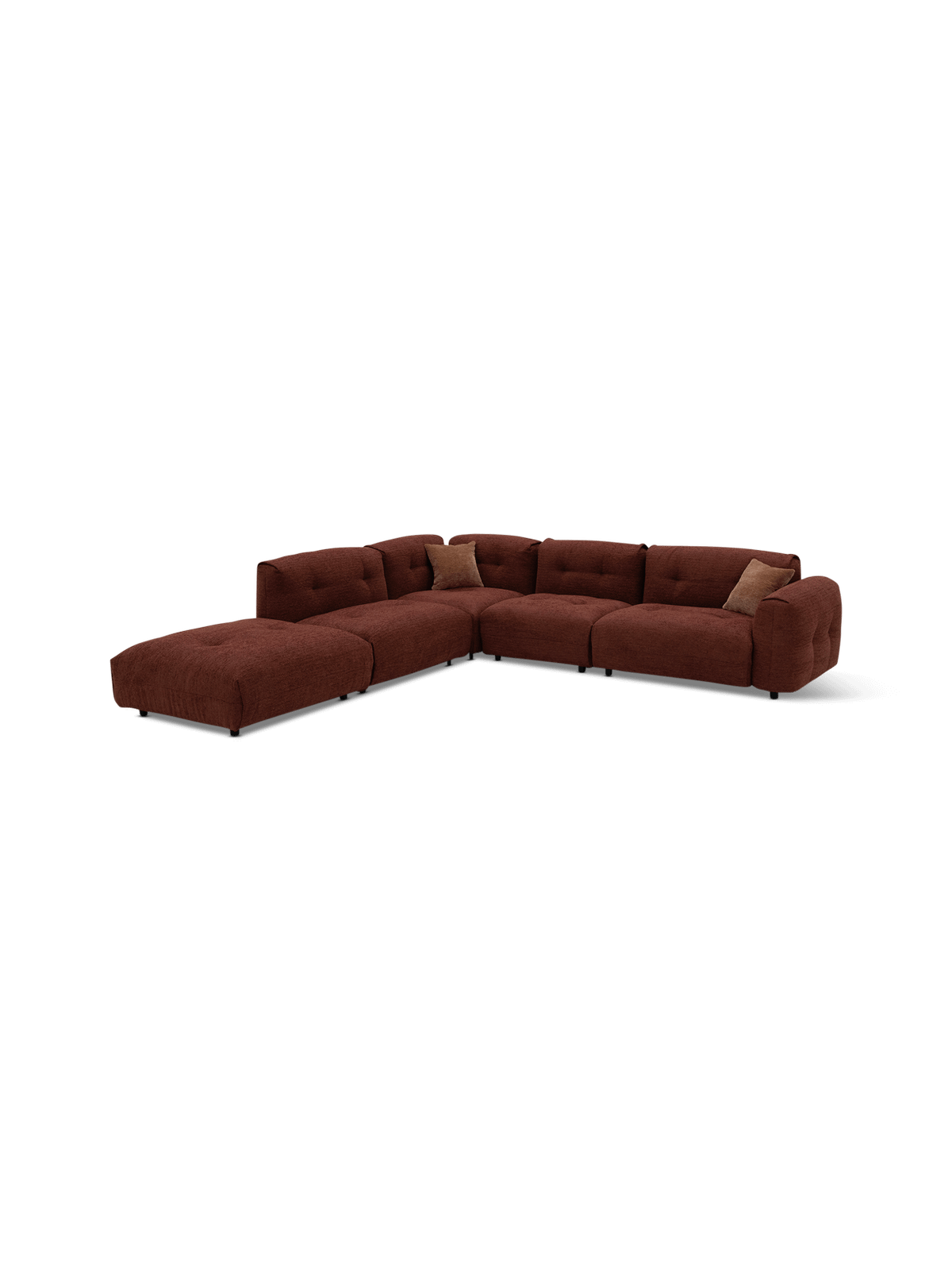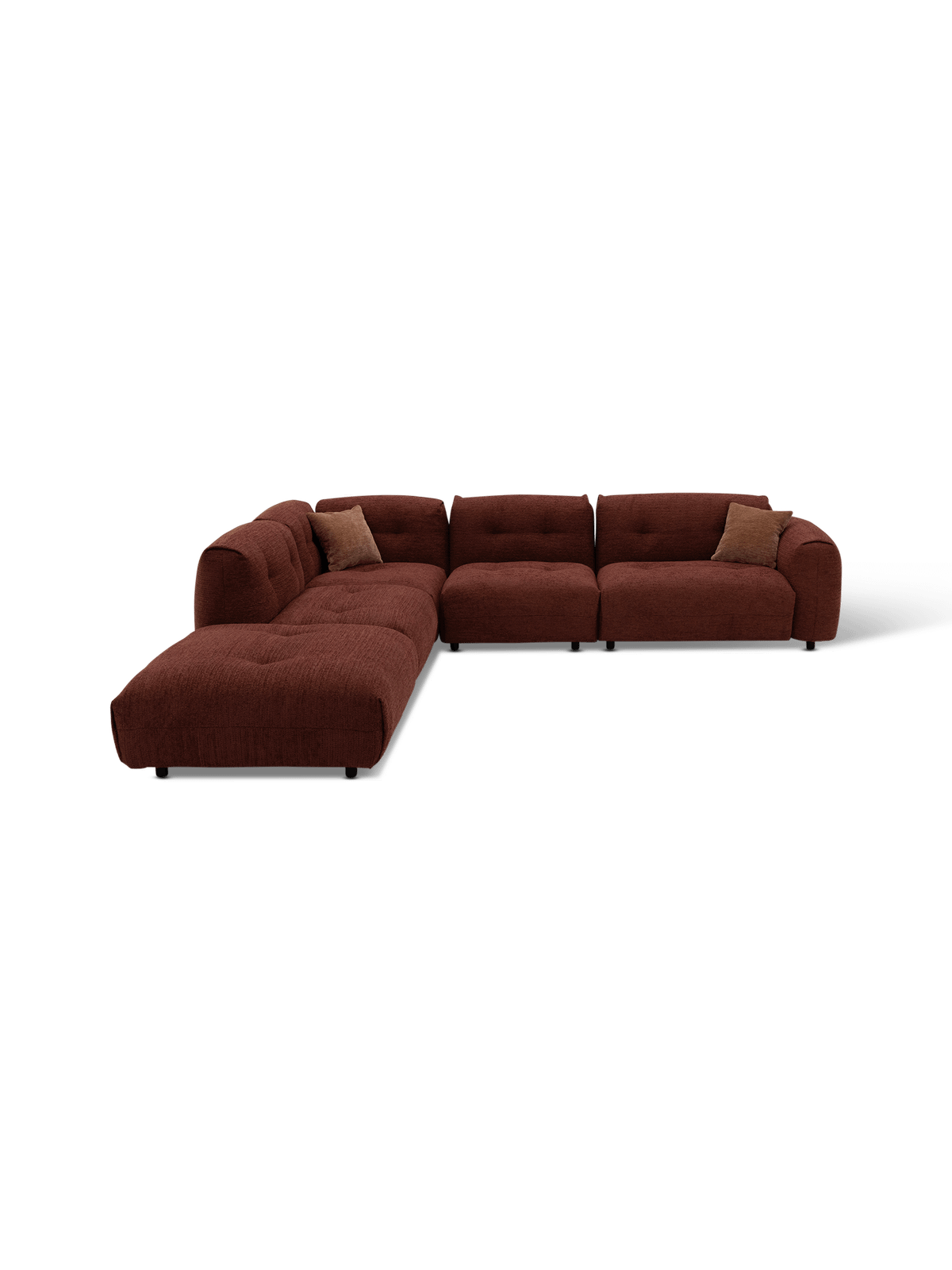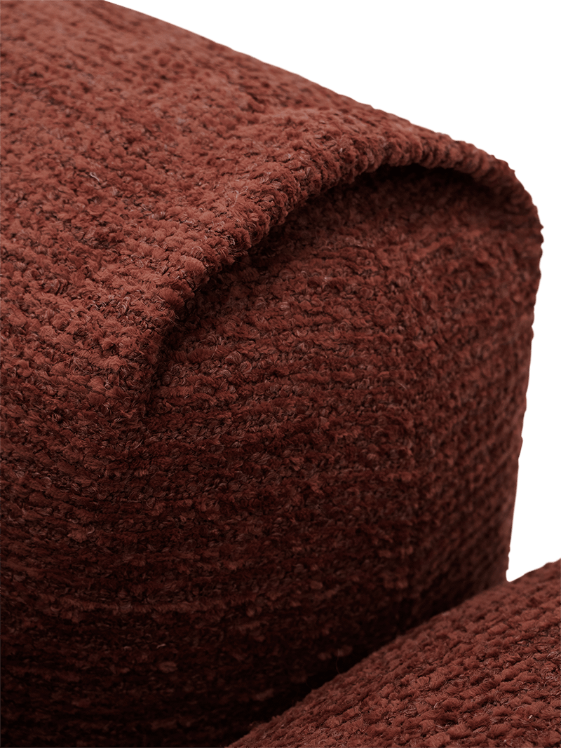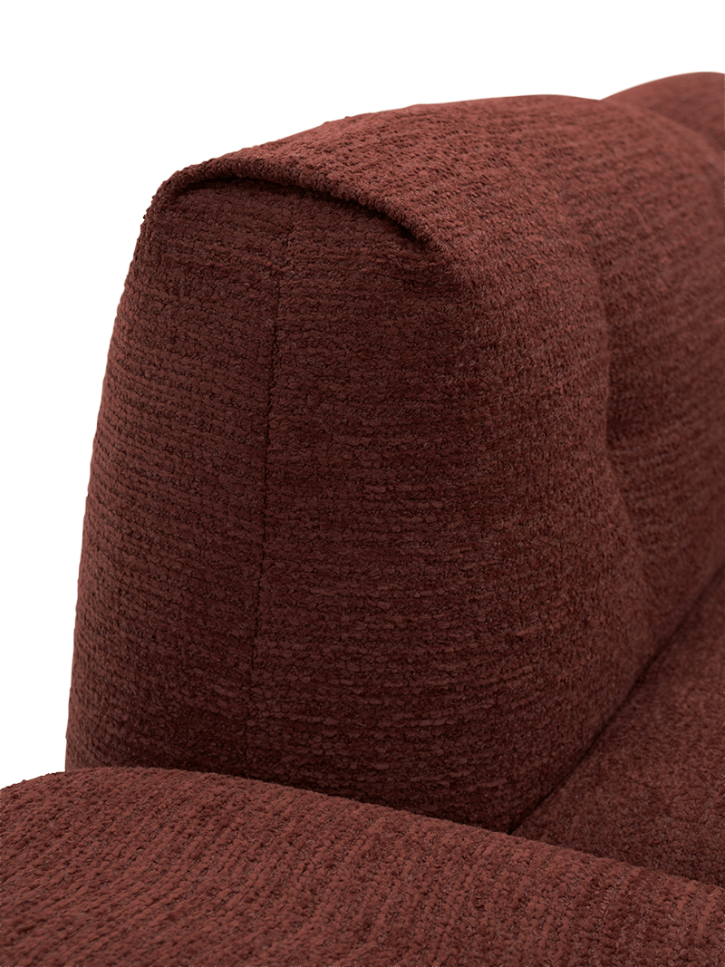Het hoeksalon Modular brengt warmte en elegantie in je woonkamer. De diepe, rijke tint en de afgeronde vormen zorgen voor een eigentijdse look die comfort uitstraalt. Dankzij de zachte bekleding en de uitnodigende zitting vormt dit salon het perfecte middelpunt voor ontspanning en gezelligheid.