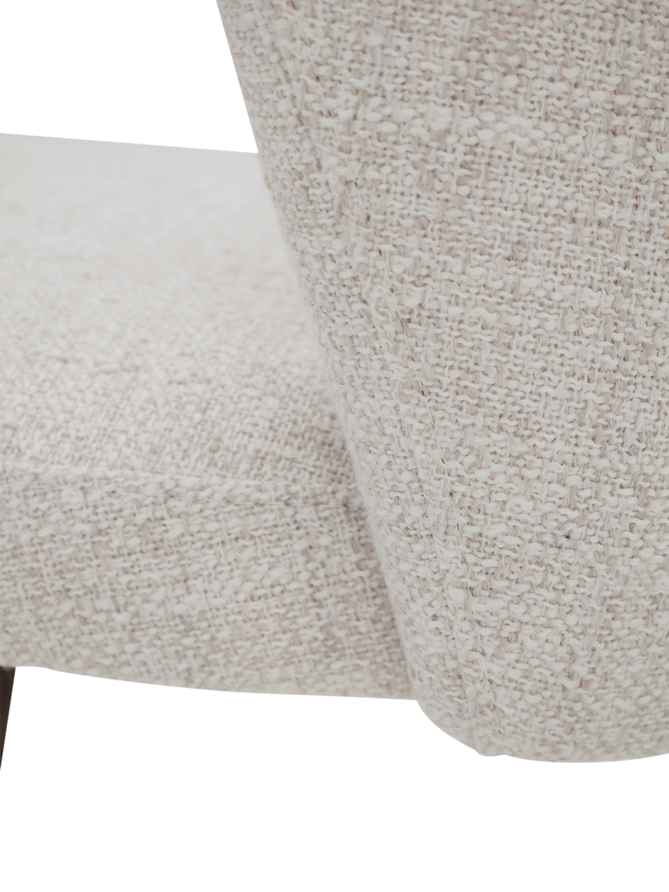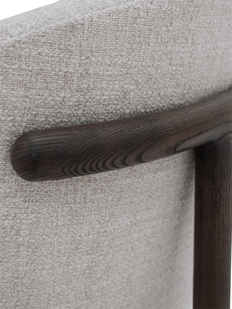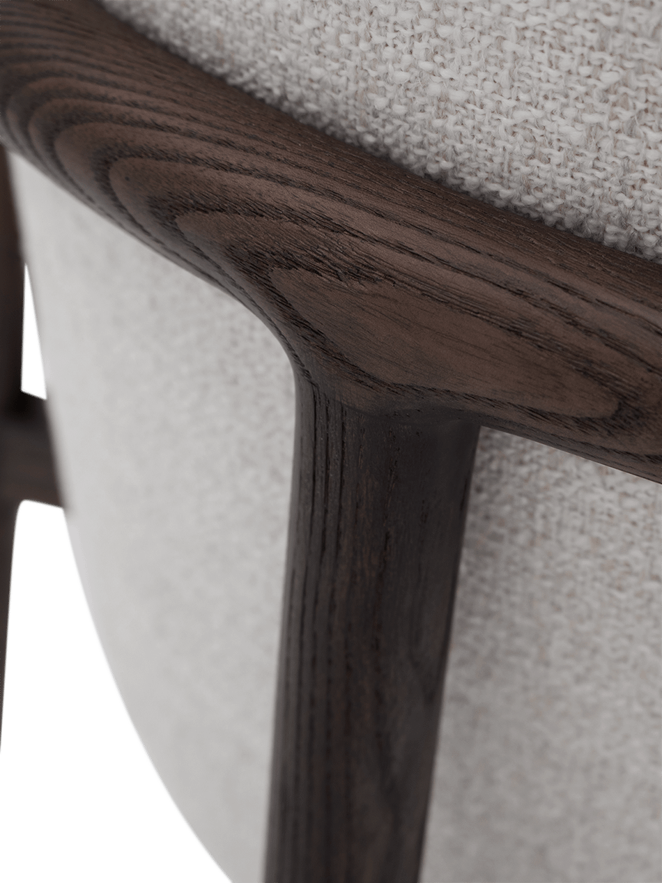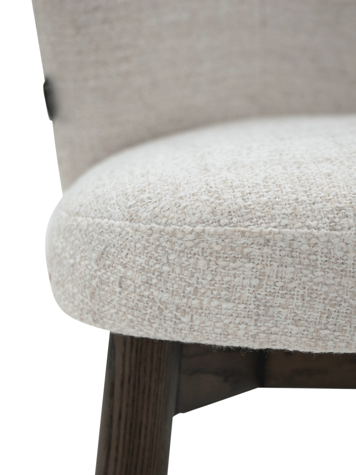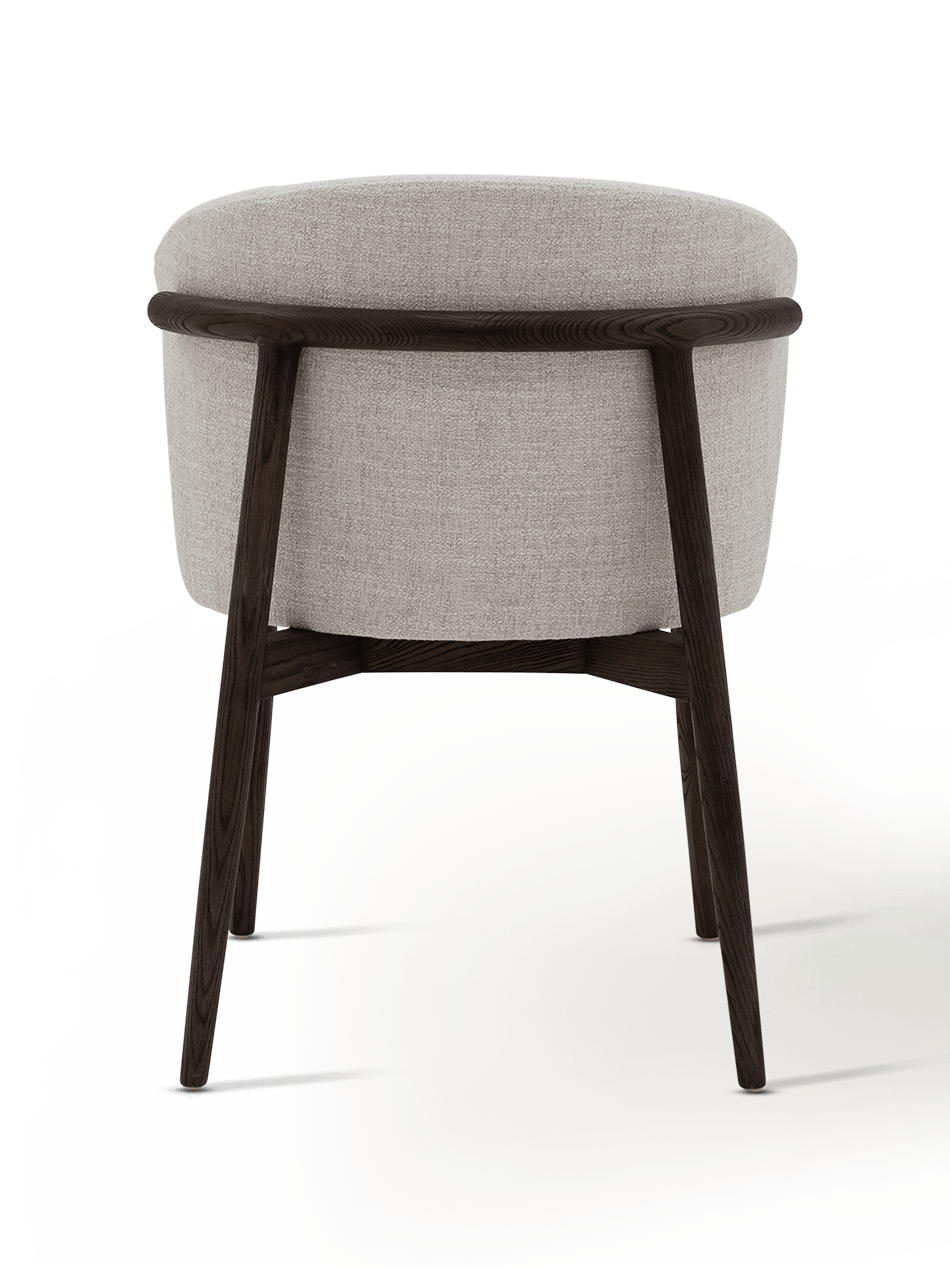 Dankzij zijn ergonomische opbouw en afgeronde rugleuning biedt Nido een aangenaam zitcomfort – ideaal voor lange diners of ontspannen momenten aan tafel. De zachte, geweven stof voelt warm aan en versterkt de huiselijke uitstraling van het ontwerp.