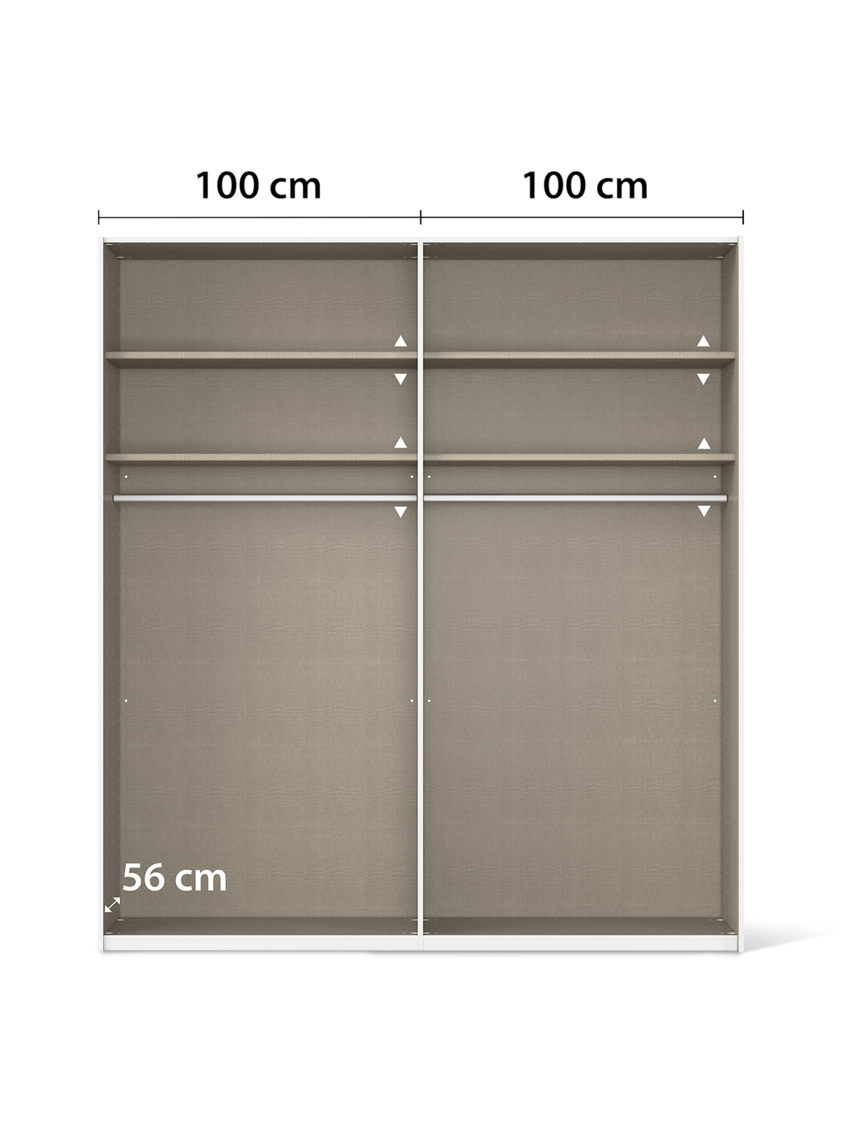 Met zijn handige schuifdeuren is deze kleerkast perfect voor ruimtes waar elke centimeter telt. Je hebt geen extra plaats nodig om deuren te openen, waardoor je de kast ook in kleinere kamers vlot kan gebruiken. Binnenin biedt de kast een slimme indeling met legplanken en hangruimte, zodat je al jouw kleding netjes kan opbergen.