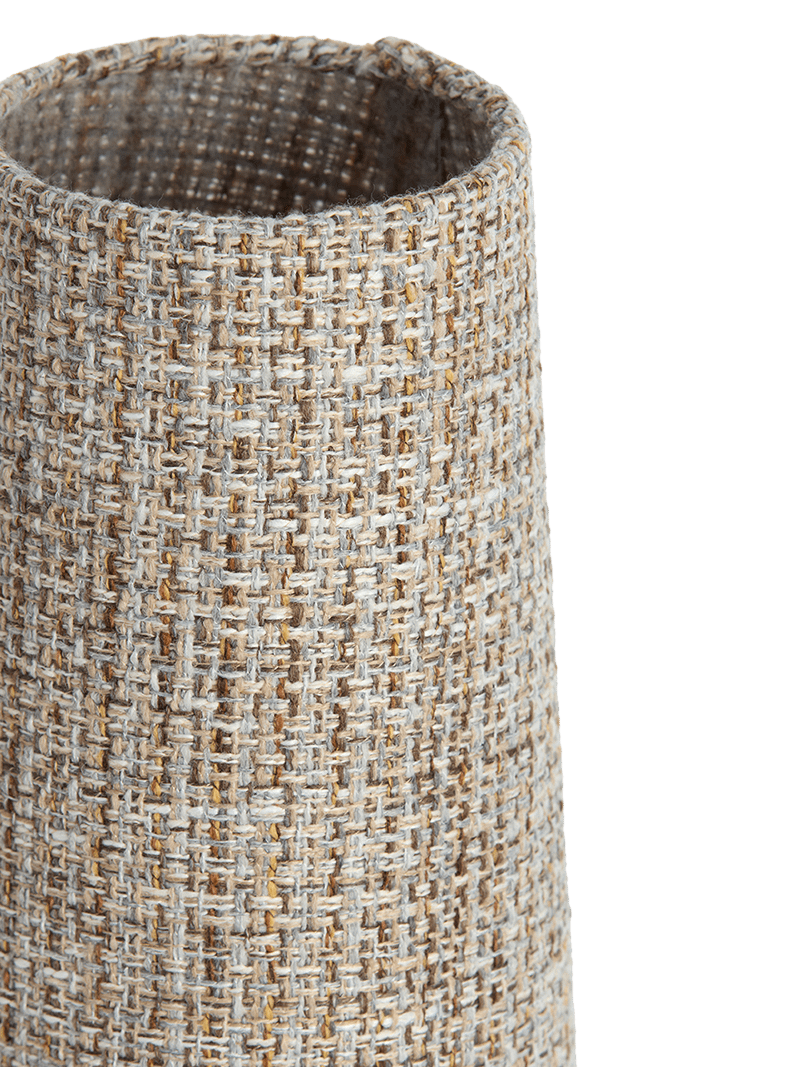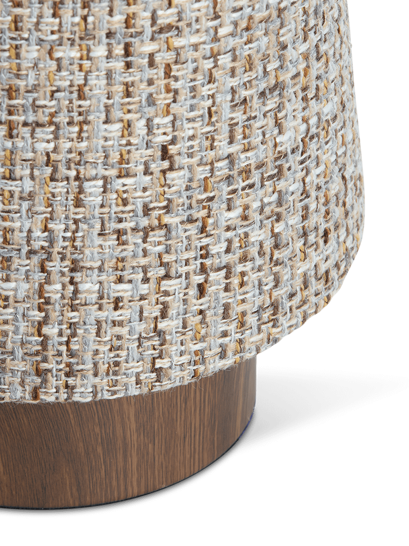 De geweven lampenkap geeft deze tafellamp haar unieke uitstraling. De rijke textuur van de stof zorgt niet alleen voor een decoratief accent, maar helpt ook om het licht op een aangename en diffuse manier te verspreiden. Zo creëer je eenvoudig een warme gloed in de woonkamer, slaapkamer of gezellige leeshoek.