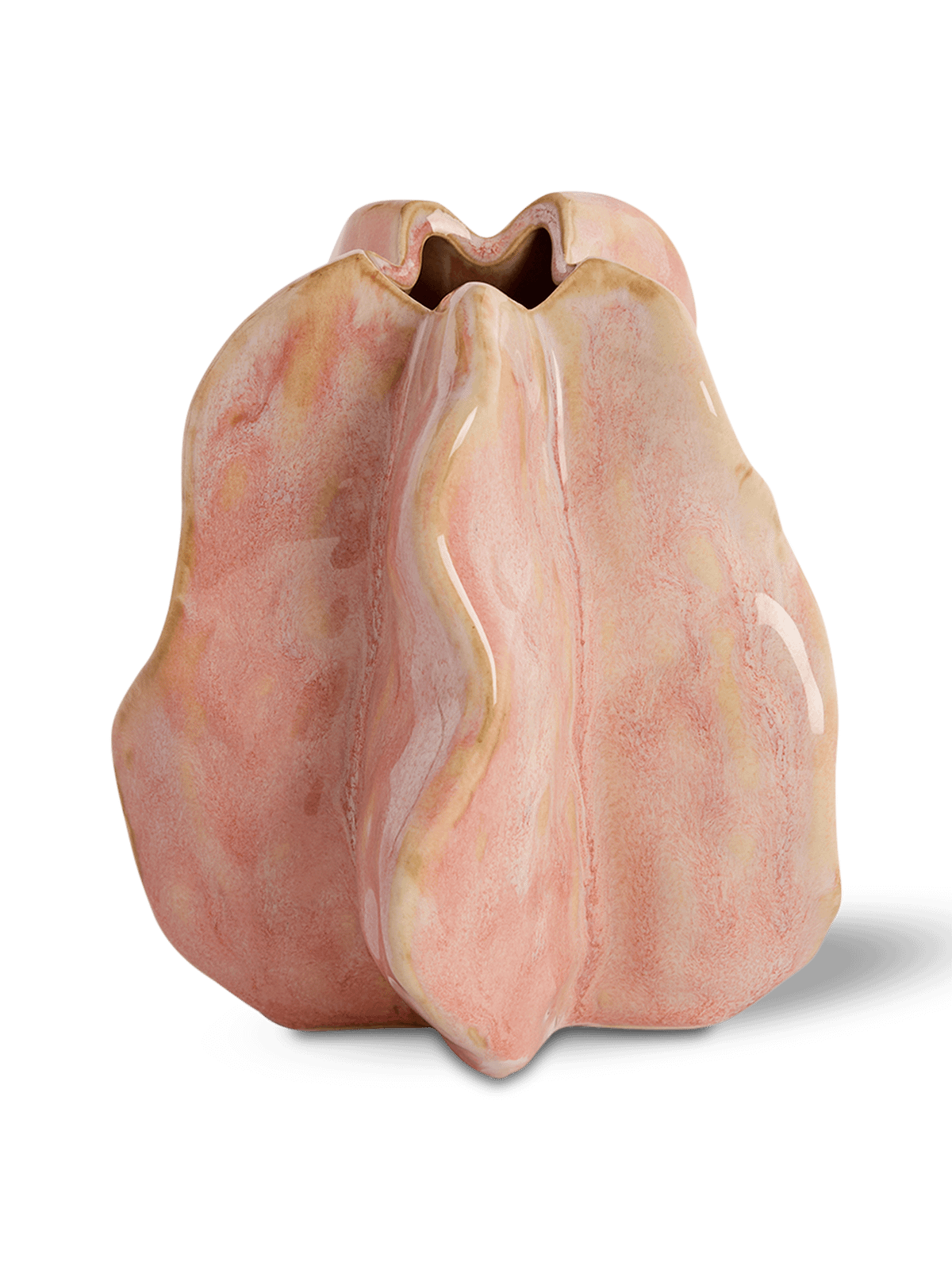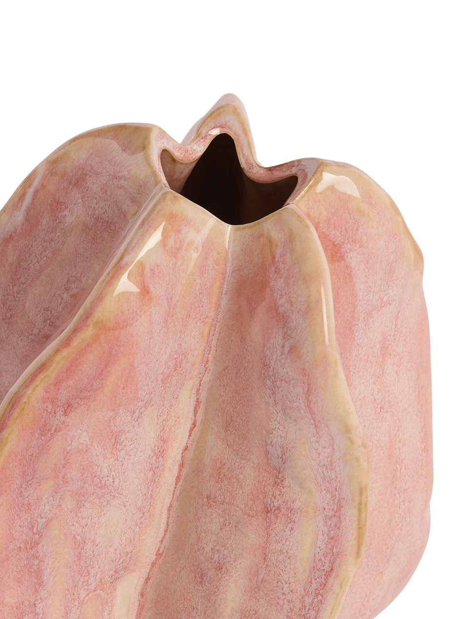 Deze keramische vaas Idrija in roze combineert een organische vorm met een glanzende afwerking. De unieke plooien en golvende lijnen geven de vaas een artistieke uitstraling. Gemaakt van keramiek, onderscheidt deze vaas zich door haar natuurlijke vorm.