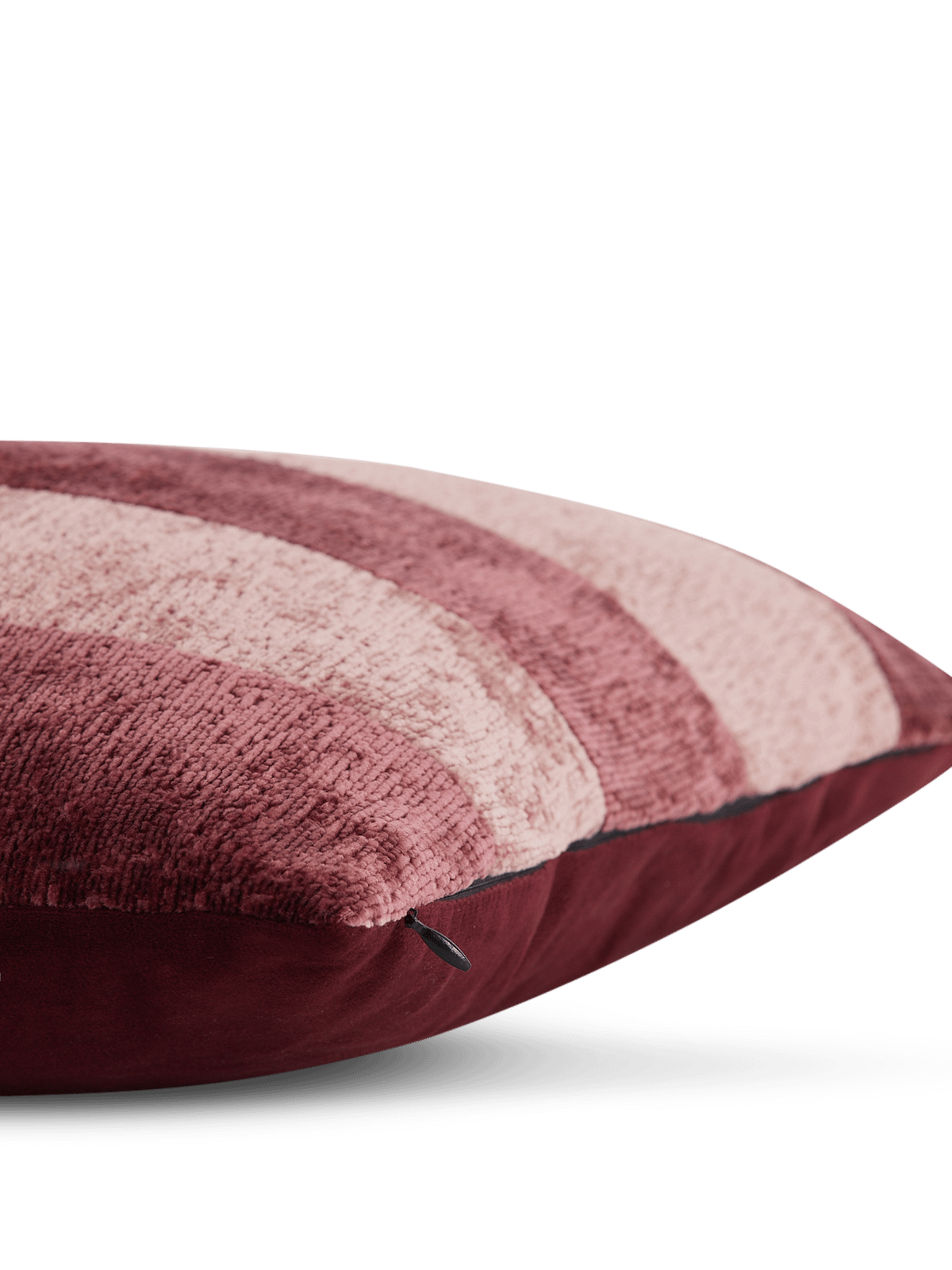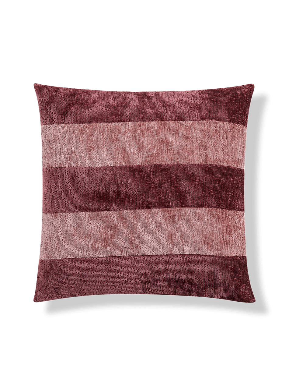 Dit kussen Ladiko in bordeaux en roze tinten brengt een warme sfeer in je interieur. De brede strepen in fluweelzachte stof creëren een mooi contrast. Perfect om je zetel, fauteuil of bed net dat tikkeltje extra gezelligheid te geven.