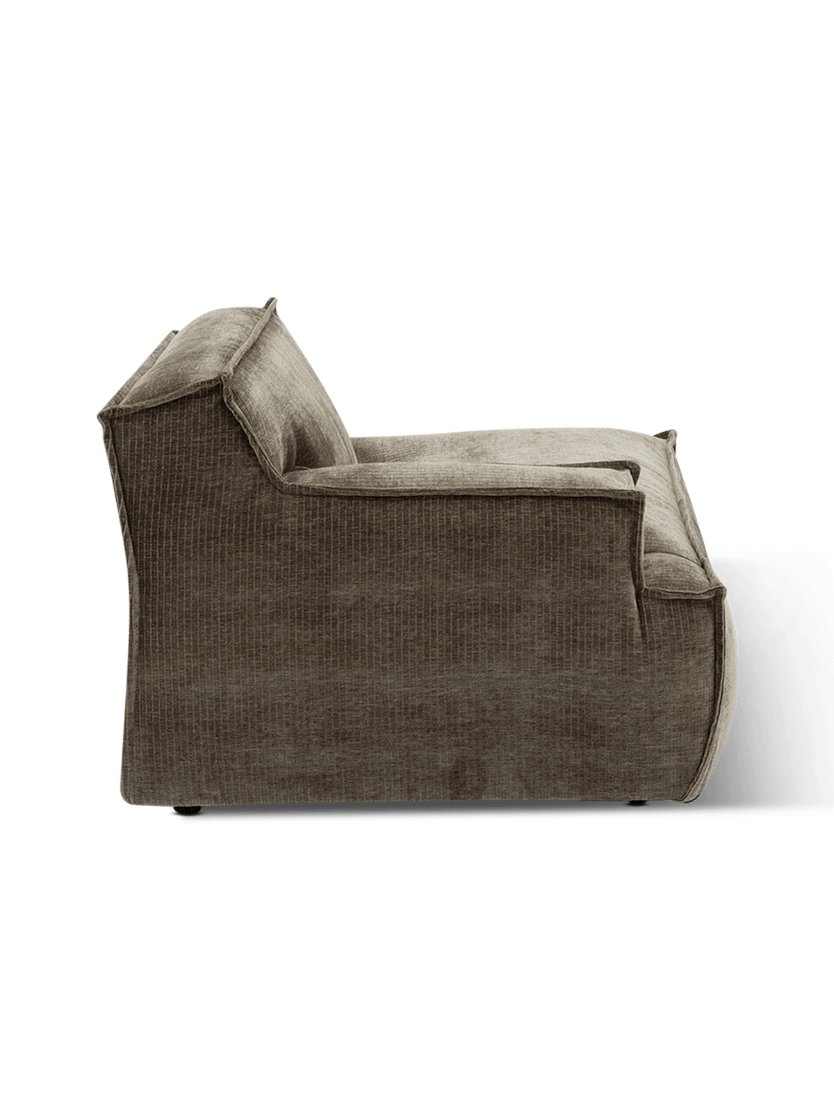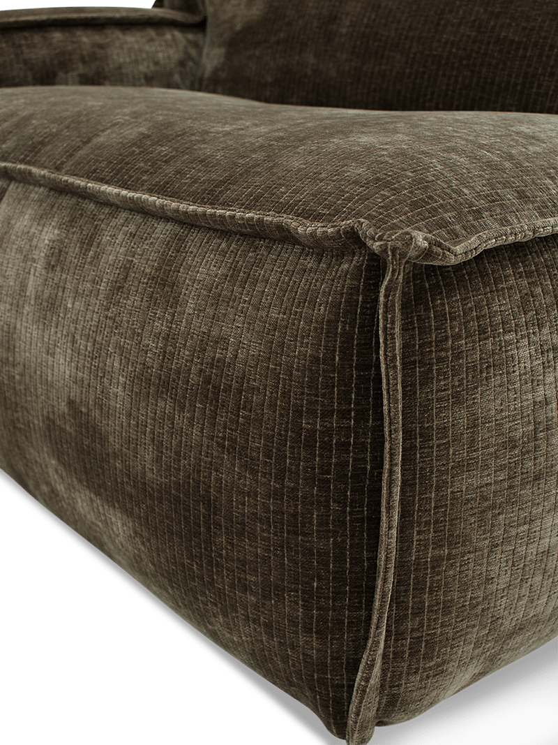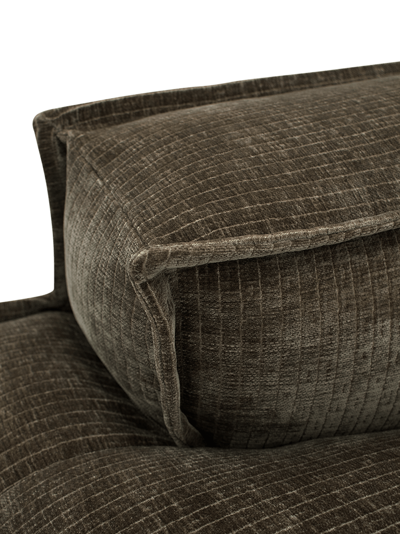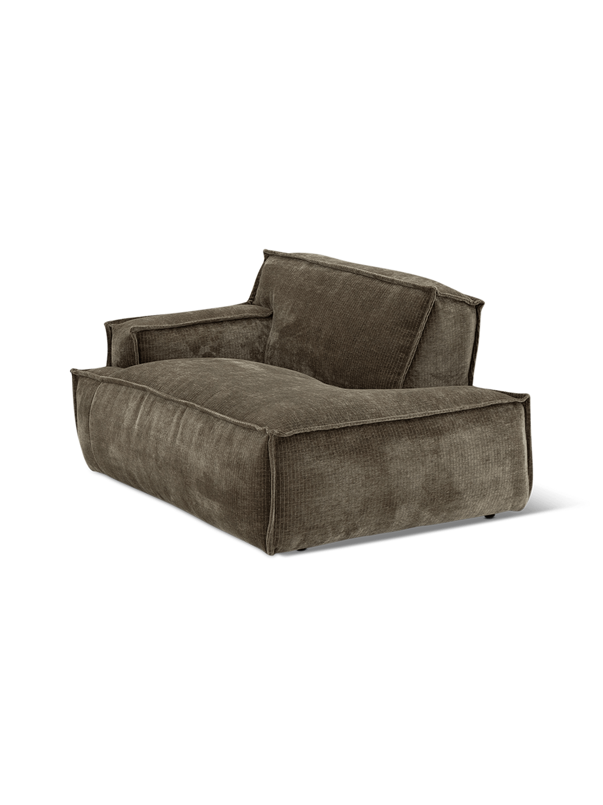 De loungezit Plesco met arm links nodigt uit tot heerlijk ontspannen in je interieur. Dankzij de zachte taupe bekleding en het volumineuze design straalt dit meubel pure gezelligheid uit. De brede zitting en comfortabele rugkussens zorgen voor een aangename zitervaring, terwijl de subtiele textuur in de stof een warme en huiselijke uitstraling geeft. Perfect als losse eyecatcher of als onderdeel van een modulaire zetelopstelling.