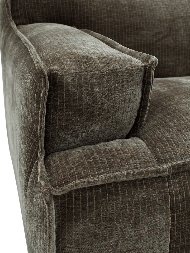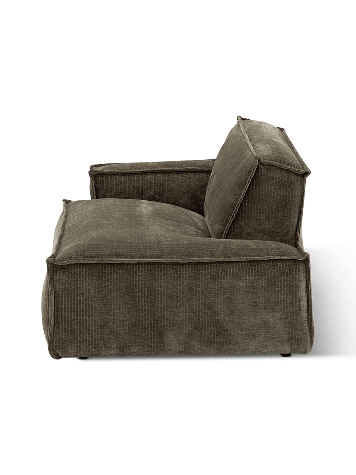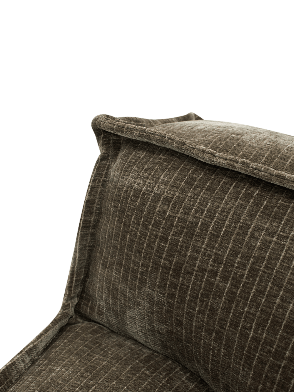 De loungezit Plesco met arm links nodigt uit tot heerlijk ontspannen in je interieur. Dankzij de zachte taupe bekleding en het volumineuze design straalt dit meubel pure gezelligheid uit. De brede zitting en comfortabele rugkussens zorgen voor een aangename zitervaring, terwijl de subtiele textuur in de stof een warme en huiselijke uitstraling geeft. Perfect als losse eyecatcher of als onderdeel van een modulaire zetelopstelling.
