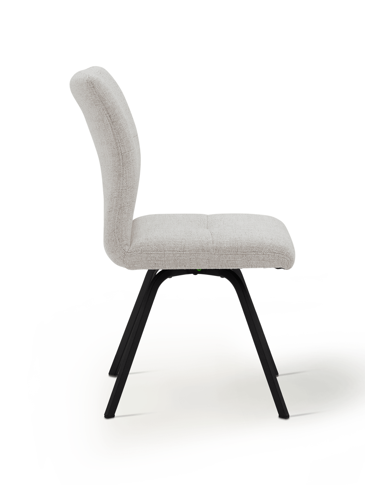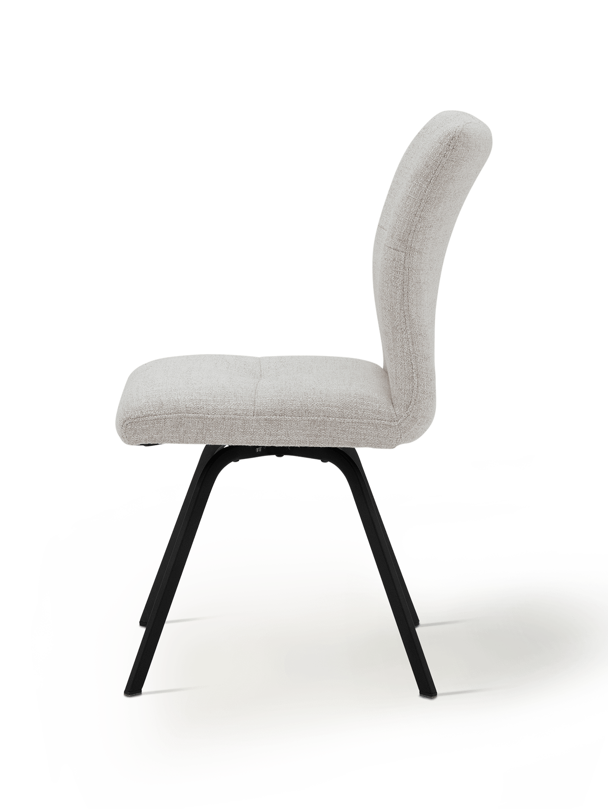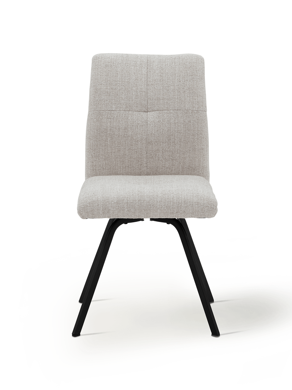 De afgeronde rug en zitting bieden uitstekende ondersteuning, ideaal voor lange tafelmomenten. Dankzij de zitdiepte van 45 cm en de zithoogte van 48 cm ervaar je een ontspannen maar stabiele zithouding. Het zwarte metalen onderstel zorgt voor een moderne, verfijnde basis die de natuurlijke uitstraling van de stof perfect contrasteert.