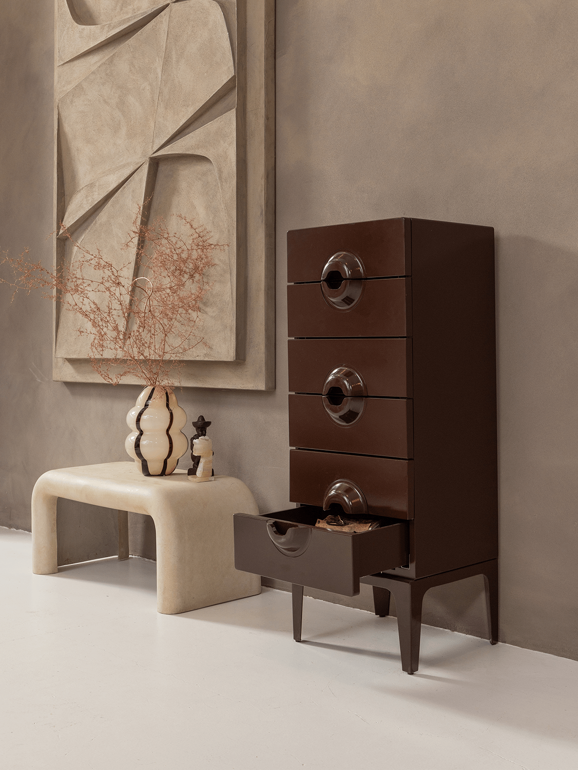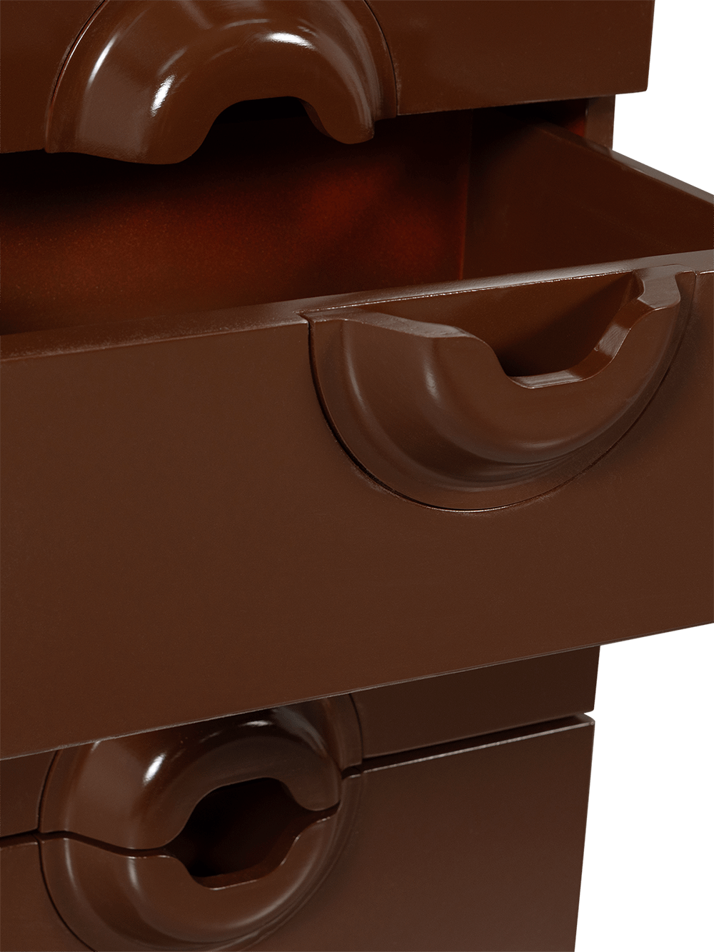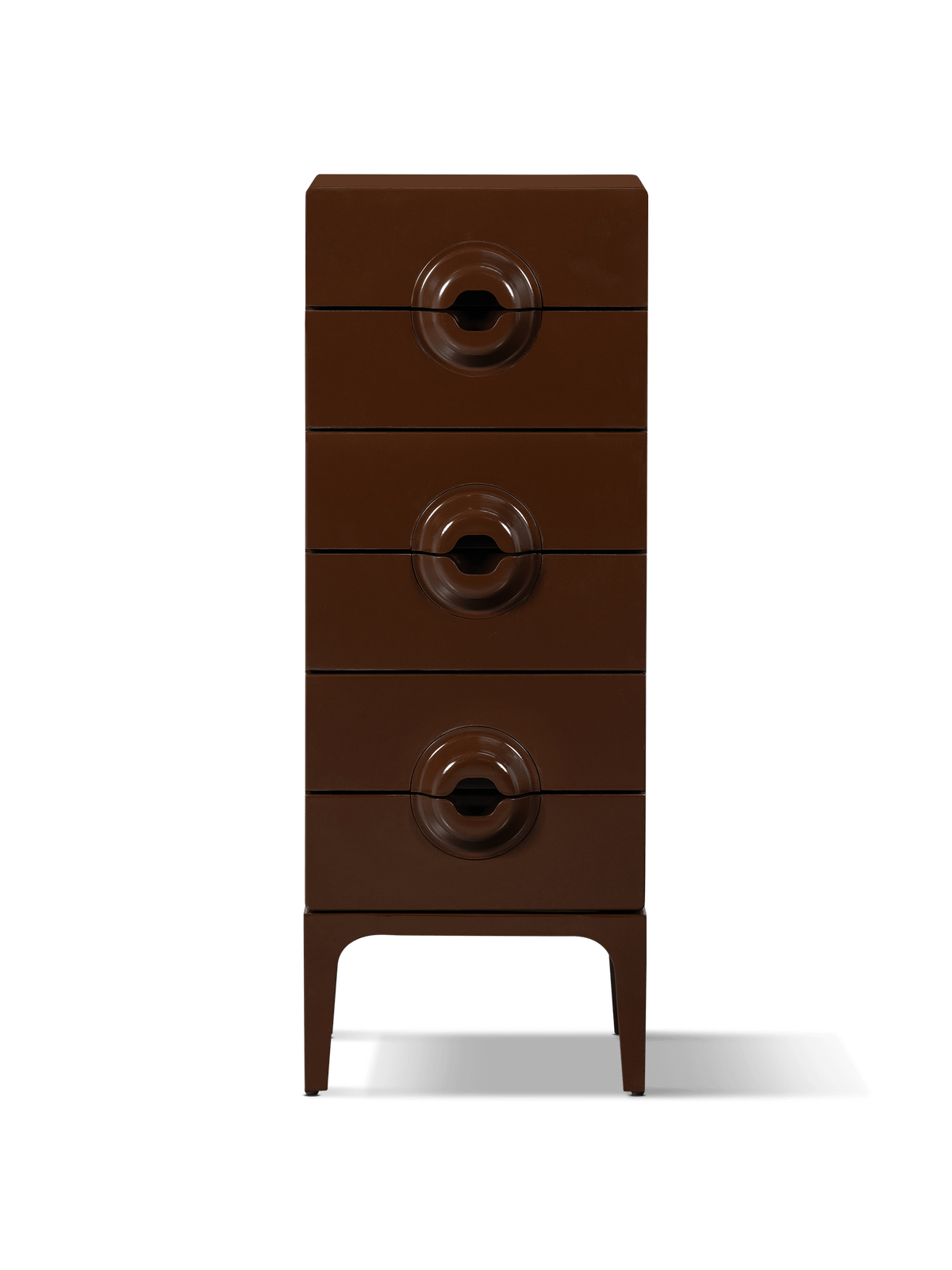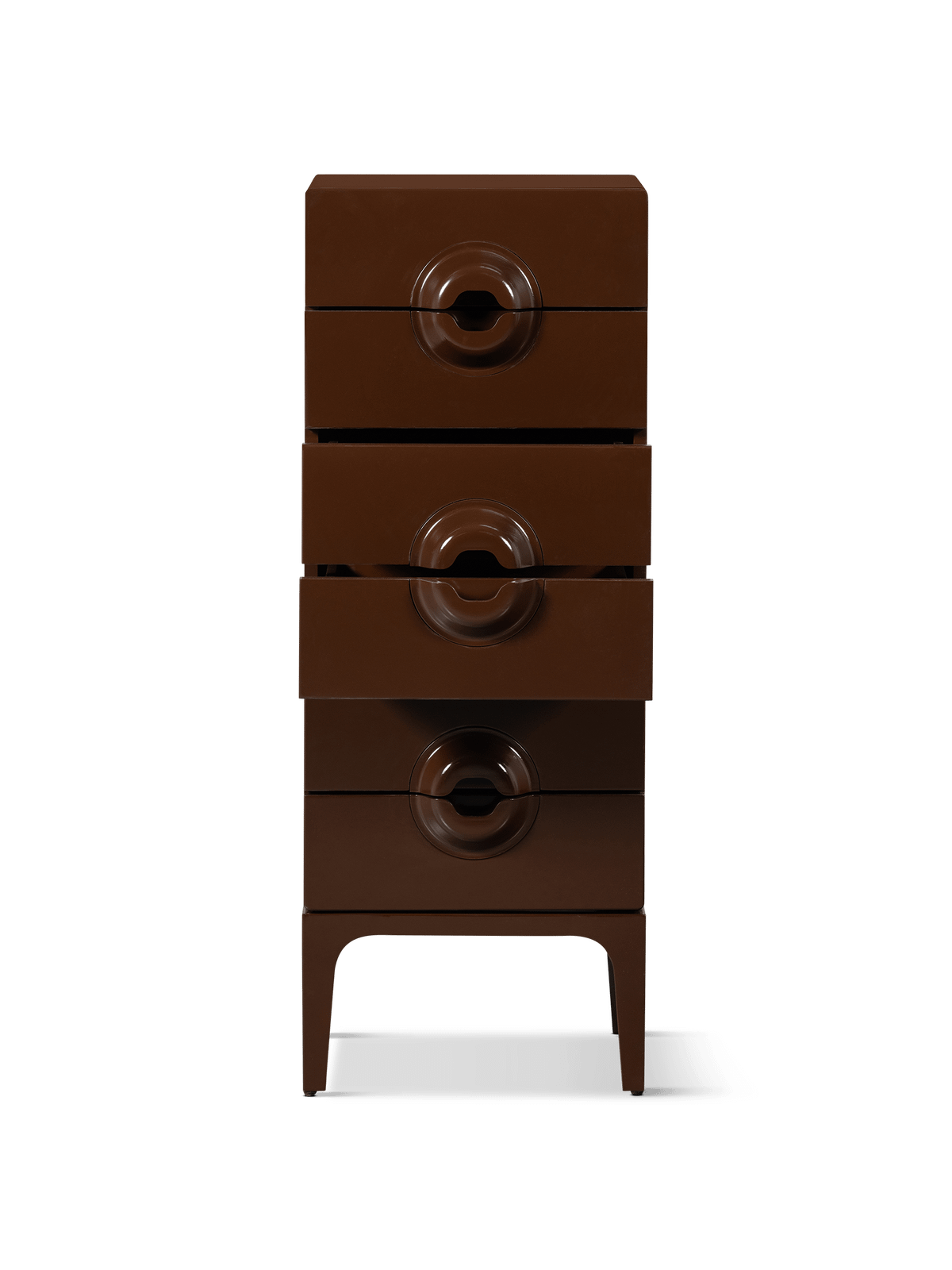 De ladekast Merge van Woood is een verfijnd meubel met een speelse retrotoets. De unieke vormgeving van de handgrepen en de glanzende afwerking zorgen voor een opvallend designstuk dat zich moeiteloos laat integreren in zowel moderne als karaktervolle interieurs. De warme bruin/rode tint geeft een luxueuze uitstraling die onmiddellijk sfeer brengt in de ruimte.