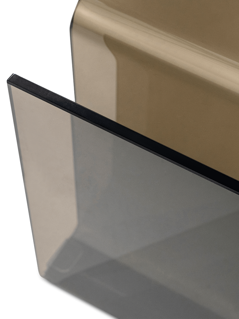 De Shadow bijzettafel straalt eenvoud en verfijning uit. Volledig vervaardigd uit bruin getint glas, vormt deze bijzettafel een elegant accent in elk interieur. Dankzij haar transparante, licht reflecterende oppervlak oogt bijzettafel Shadow luchtig en eigentijds, terwijl de warme tint zorgt voor een zachte, sfeervolle uitstraling.