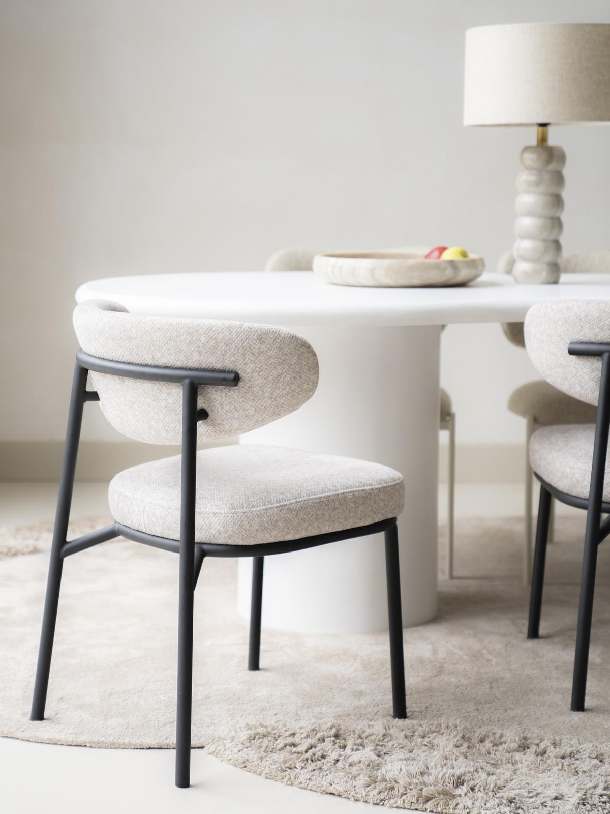 Of je nu kiest voor een eettafel in hout, keramiek of metaal, de neutrale tint en het luchtige ontwerp maken Jari een veelzijdige aanvulling. In combinatie met zachte texturen of ton-sur-ton tinten krijgt de eetruimte een rustige, uitnodigende sfeer.