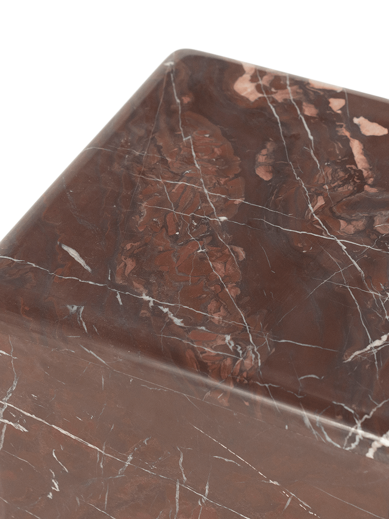 De Dice bijzettafel van By-boo combineert elegantie met een vleugje pit. Uitgevoerd in rood marmer trekt hij meteen de aandacht dankzij zijn warme tinten en unieke aderpatroon. Elke tafel is anders, wat zorgt voor een natuurlijk en luxueus karakter.