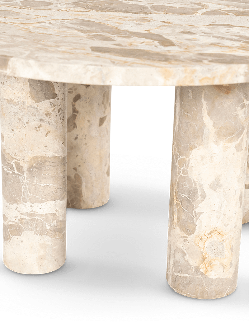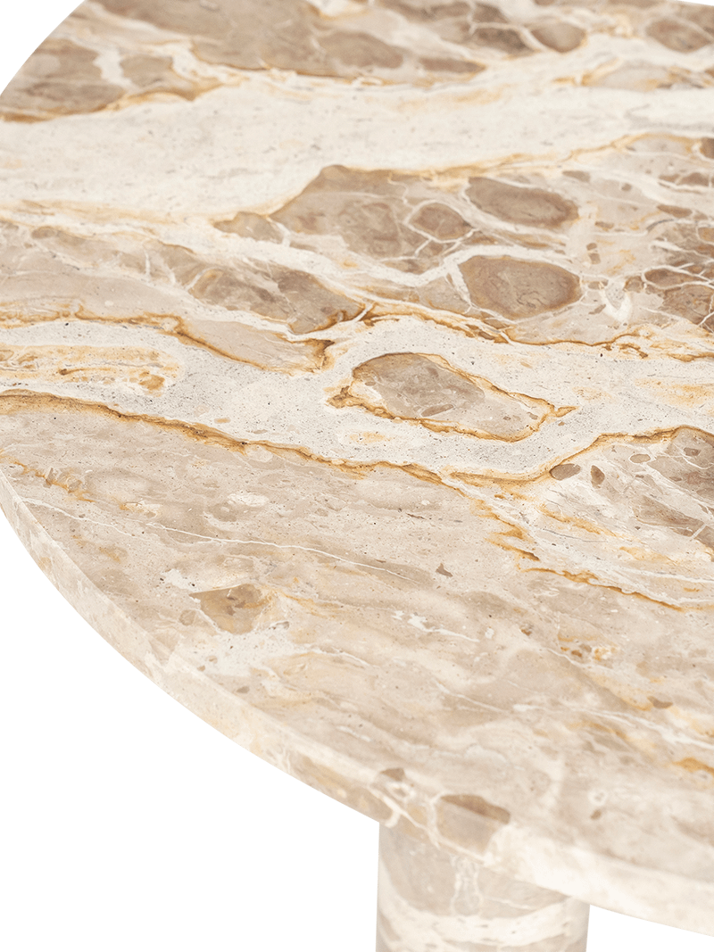 De Marmo salontafel van By-Boo, vervaardigd uit marmer, combineert deze tafel robuuste stevigheid met een verfijnde uitstraling. De ronde vorm en vier cilindervormige poten geven de bijzettafel Marmo een sculpturaal karakter.