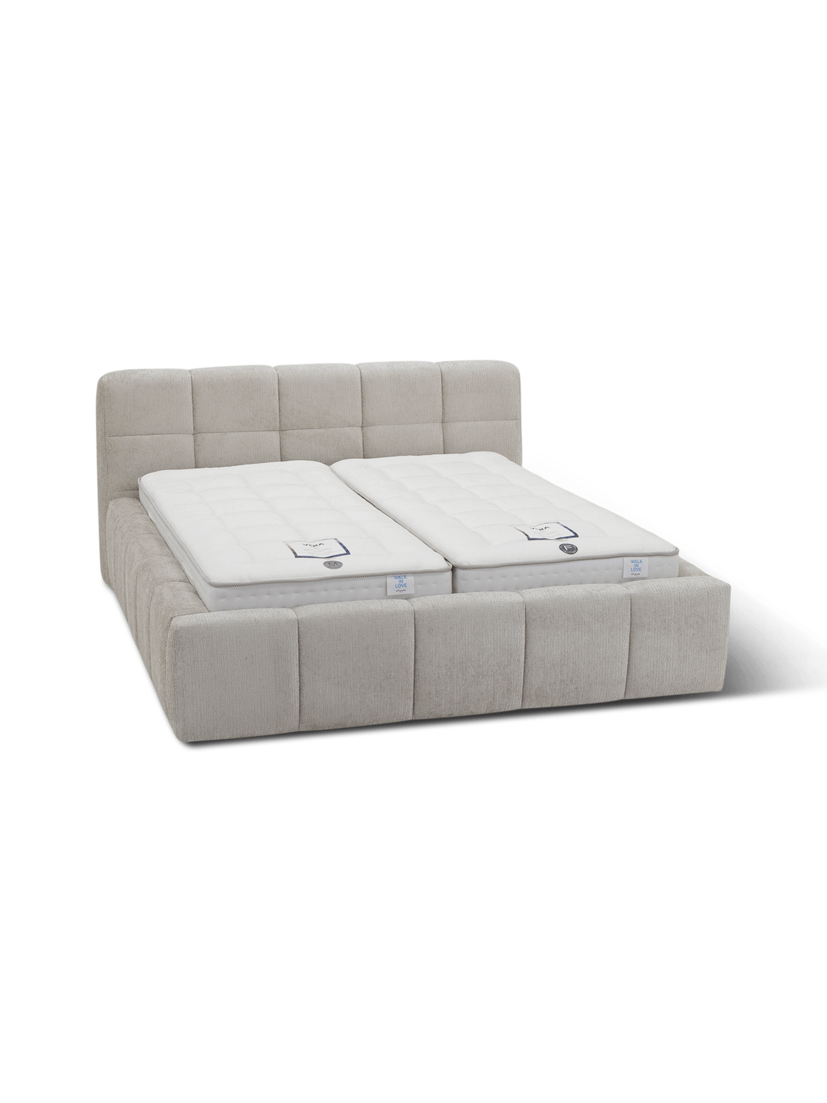 Het bed is gebouwd rond de filosofie dat vorm, functie en slaapkwaliteit onlosmakelijk verbonden zijn. De boxconstructie is stevig en stabiel, terwijl de ondersteuning optimaal afgestemd is op moderne matrassen — of die nu uit koudschuim, latex of pocketveren bestaan. Dankzij deze solide basis wordt de druk op de wervelkolom verminderd en blijft het lichaam in een natuurlijke slaaphouding.