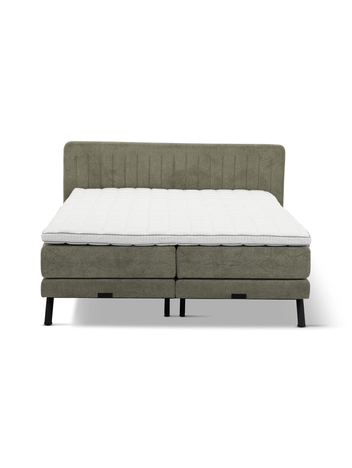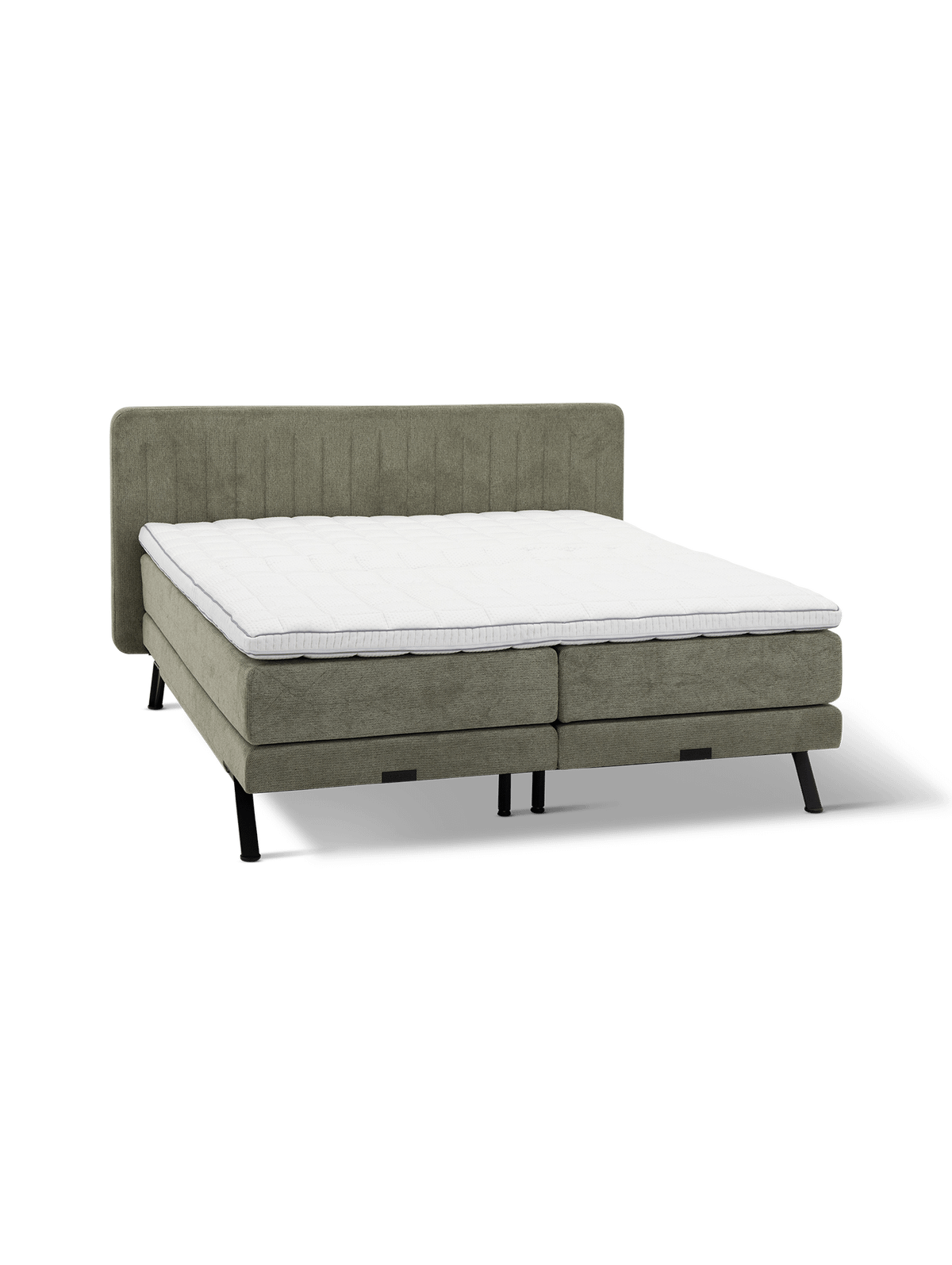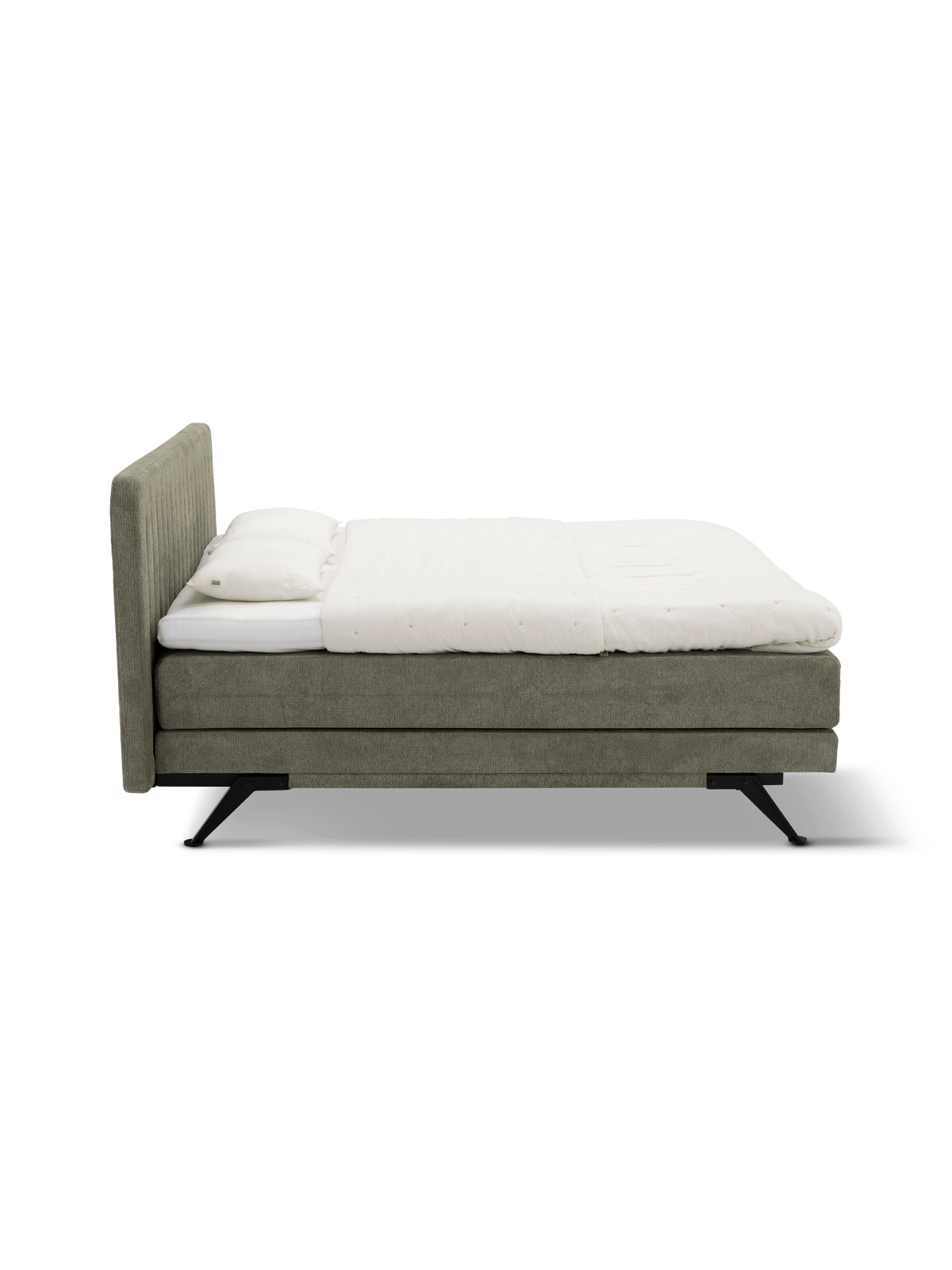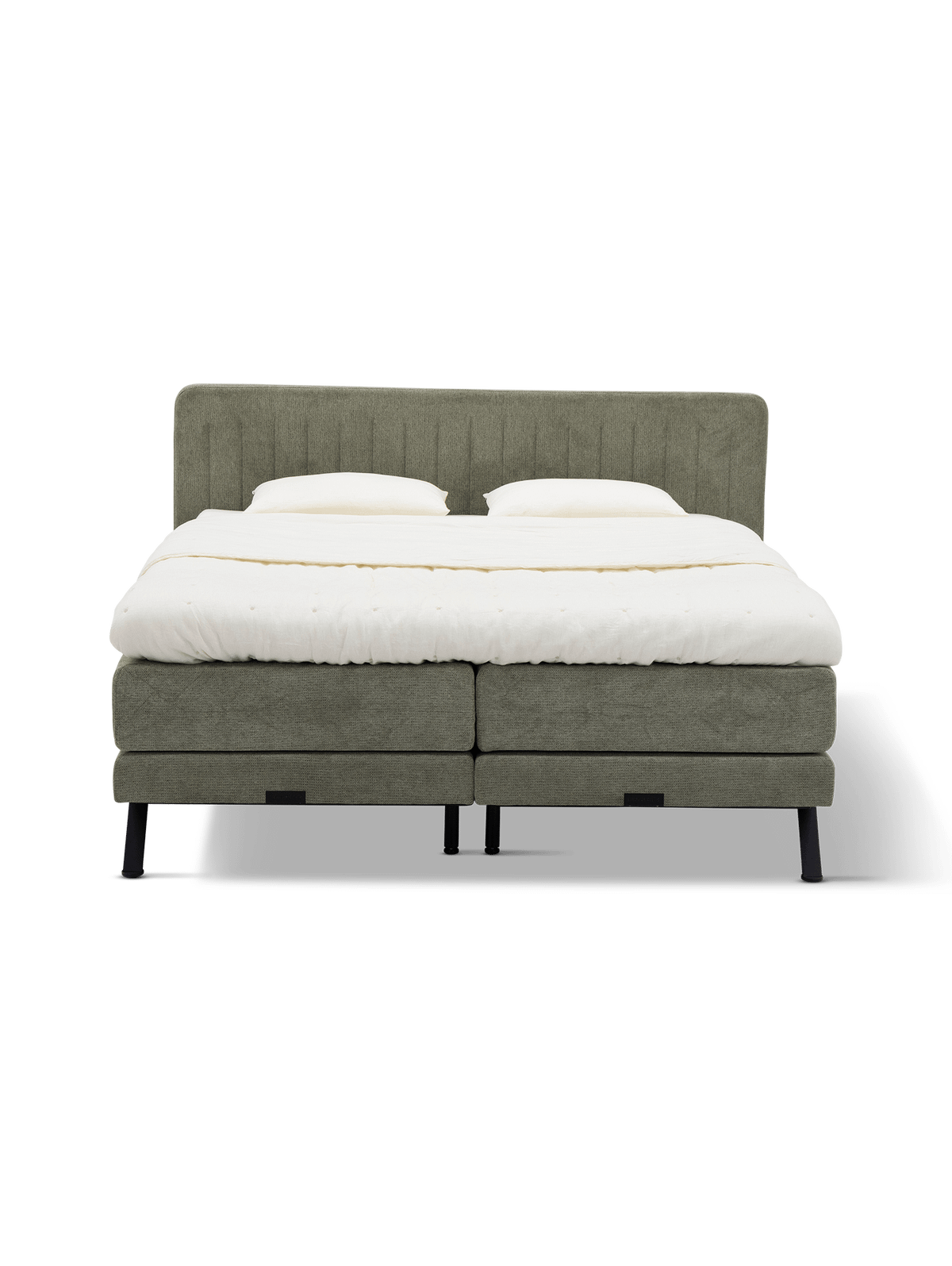 De Boxspring V1900 brengt tijdloos design en doordacht slaapcomfort samen in één evenwichtig geheel. Deze vlakke boxspring is uitgevoerd in de stijlvolle stof Mito Green, een subtiele, natuurlijke groentint die rust en elegantie uitstraalt in elke slaapkamer.