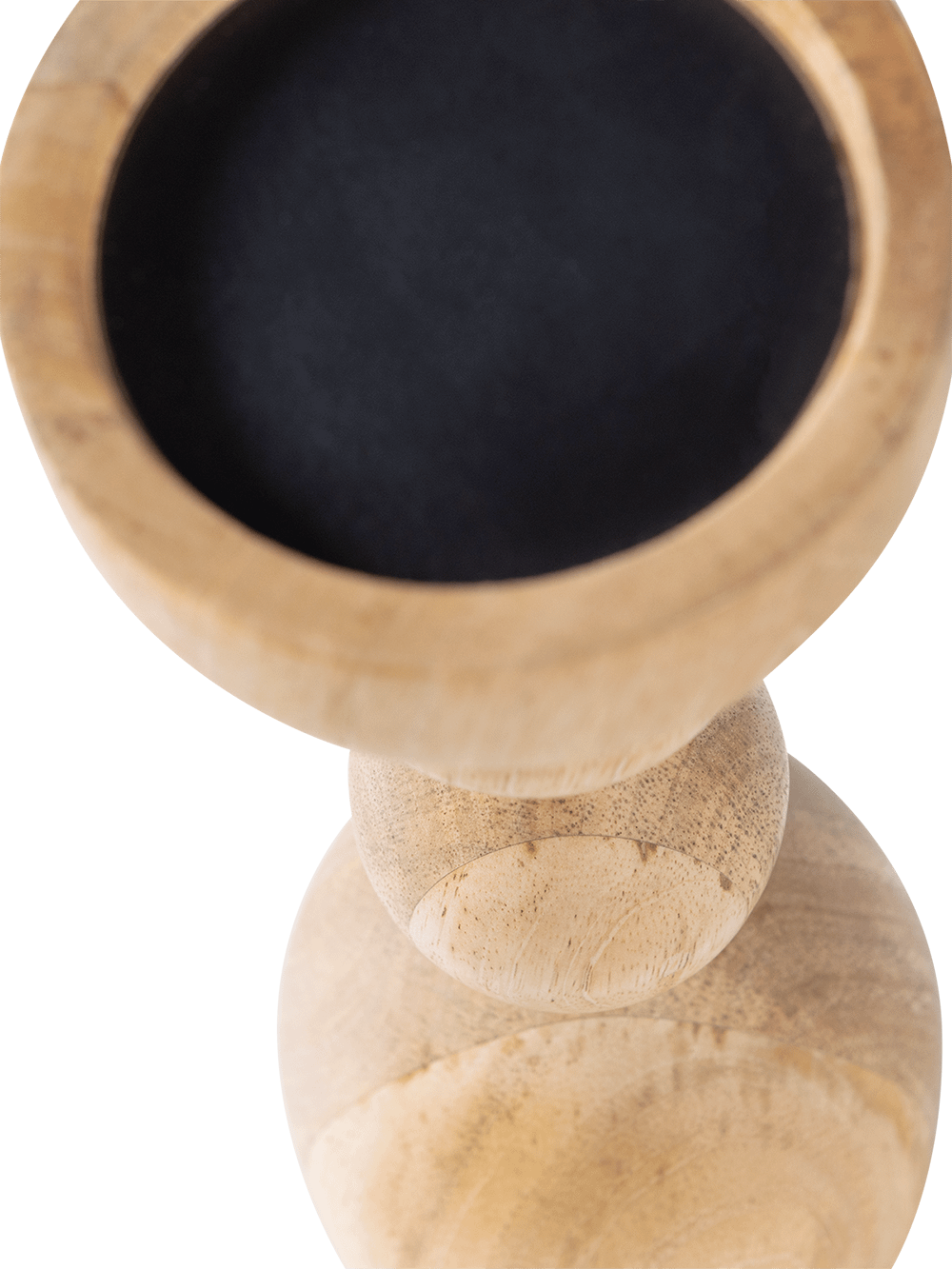 De kandelaar Liske van Woood is een elegant accessoire dat warmte en karakter toevoegt aan elk interieur. Het unieke design met zijn vloeiende, ronde vormen zorgt voor een speelse maar stijlvolle uitstraling.