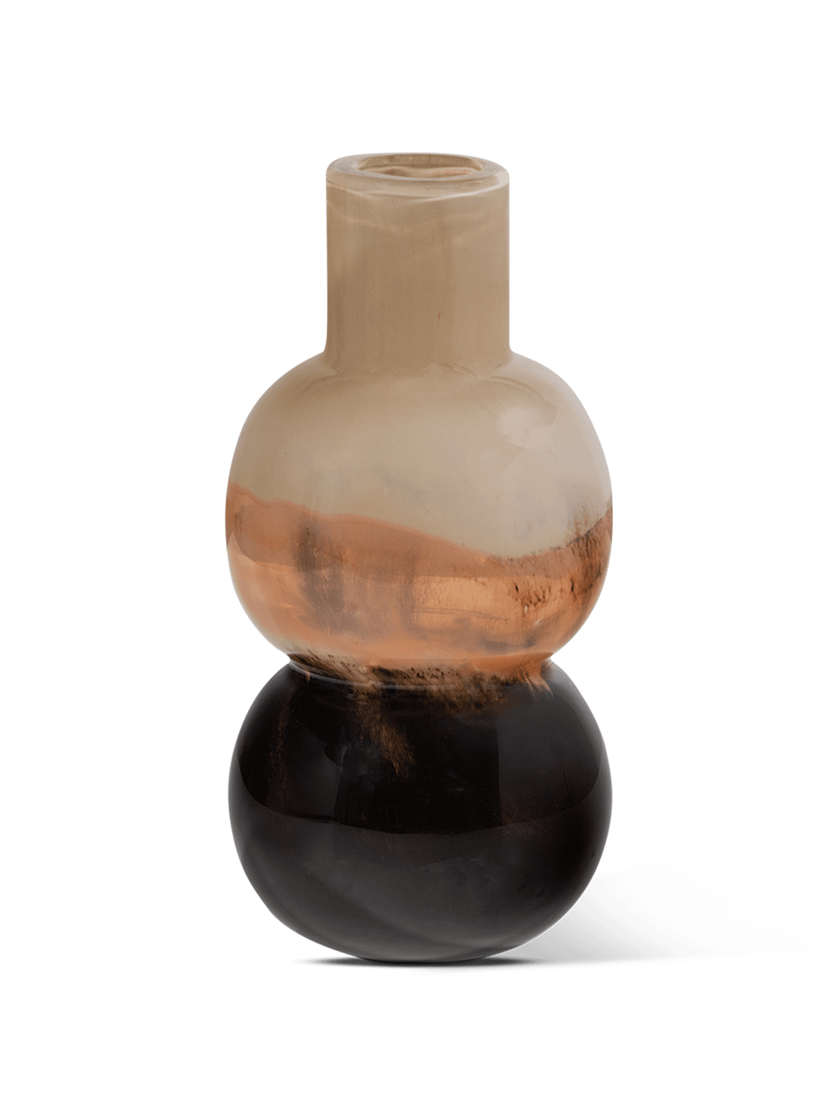 De vaas Marjon van Woood is een blikvanger voor elk interieur. Het glas heeft een gelaagde kleurovergang van zacht beige naar diep bruin. Of je hem nu combineert met enkele takken of een mooi boeket, vaas Marjon heeft steeds een stijlvolle uitstraling.