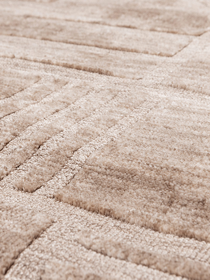 Het tapijt Lovi brengt rust en verfijning in elke leefruimte dankzij zijn zachte taupekleur en het subtiele lijnenspel in reliëf. De warme, neutrale tint creëert een gezellige sfeer en laat zich moeiteloos combineren met diverse interieurstijlen.