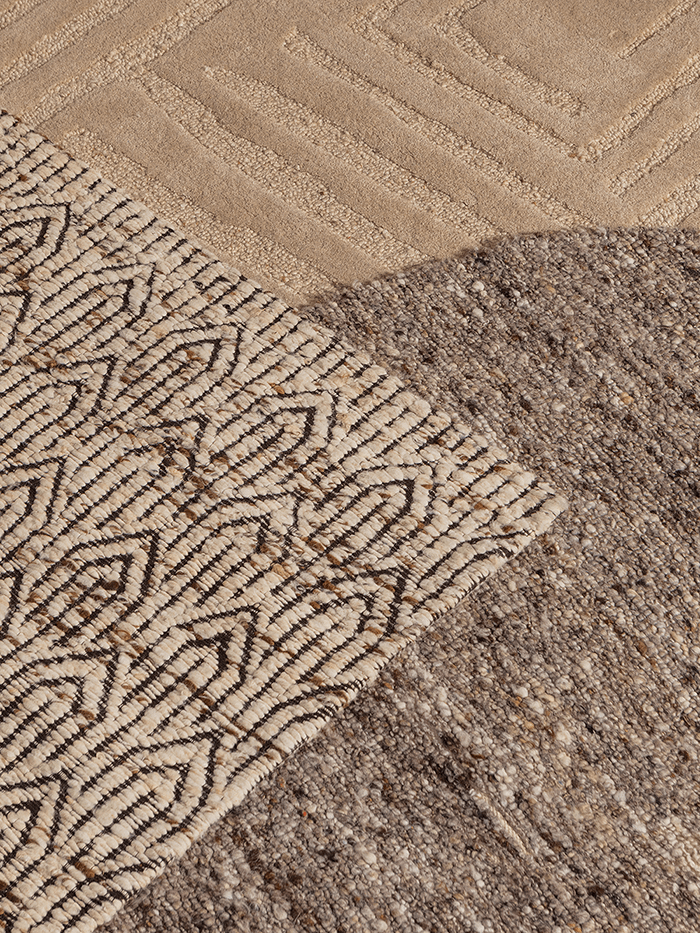 Efia is vervaardigd uit wol, wat zorgt voor een aangenaam zacht gevoel onder de voeten en een lange levensduur. Het gemêleerde patroon in bruintinten geeft het tapijt extra diepte en karakter.