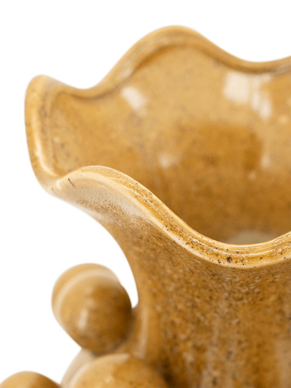 Geef je interieur een unieke uitstraling met deze opvallende vaas Viro van By-boo in mosterdkleur. De Viro vaas combineert een speels design met een robuuste afwerking, dankzij de karakteristieke bolvormige details die het geheel een eigentijdse twist geven. De glanzende afwerking in warm aardewerk benadrukt haar ambachtelijke charme en maakt van dit object een echte eyecatcher.