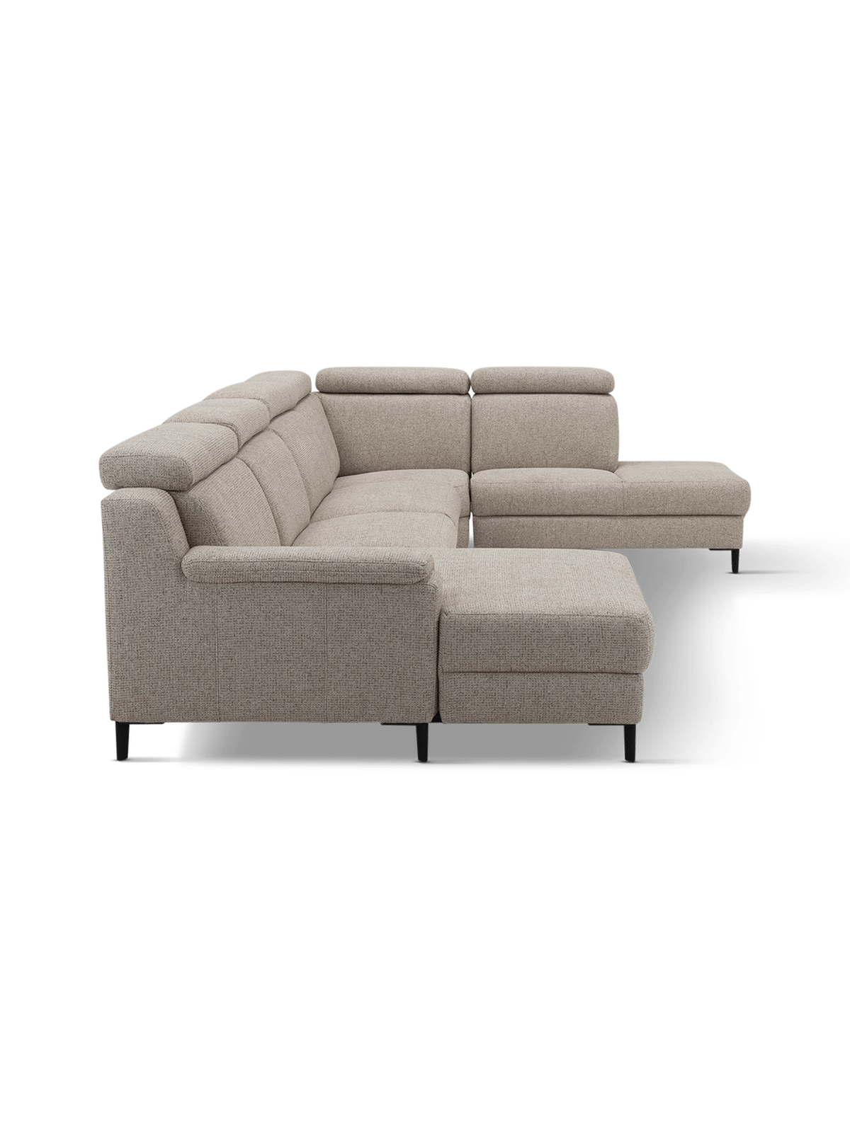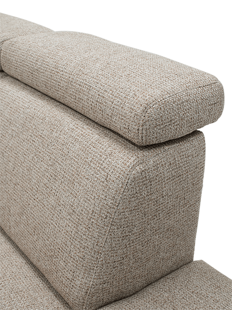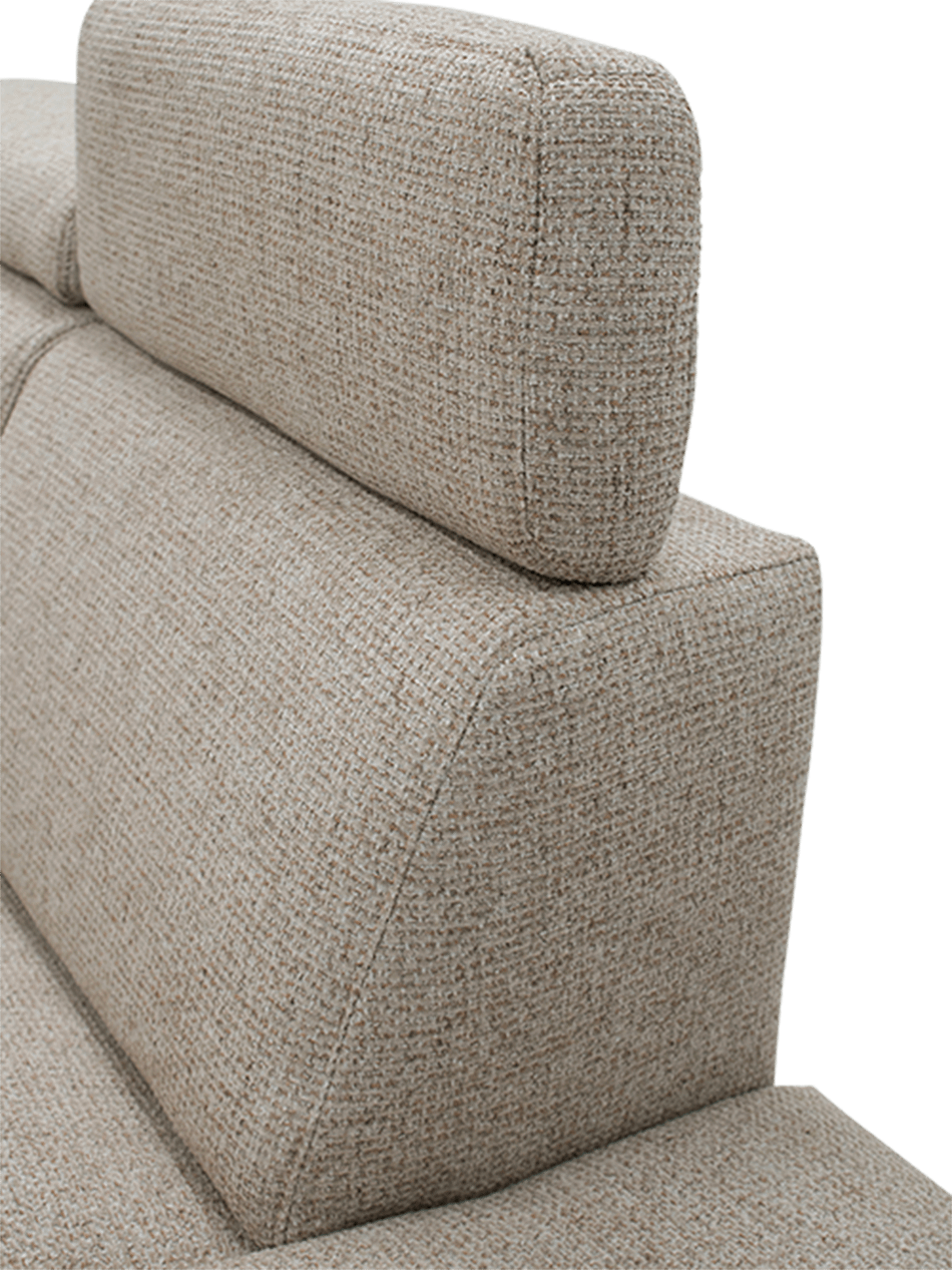 Dione onderscheidt zich door zijn verstelbare hoofdsteunen aan elk element, waarmee je het zitcomfort volledig naar wens kunt afstemmen. Daarnaast beschikt de sofa over twee geïntegreerde relaxfuncties die subtiel in het ontwerp zijn verwerkt, zodat je met één druk op de knop in de ideale lig- of tv-positie kunt ontspannen. Of je nu rechtop zit, onderuit zakt of volledig wilt relaxen – Dione past zich aan jou aan.