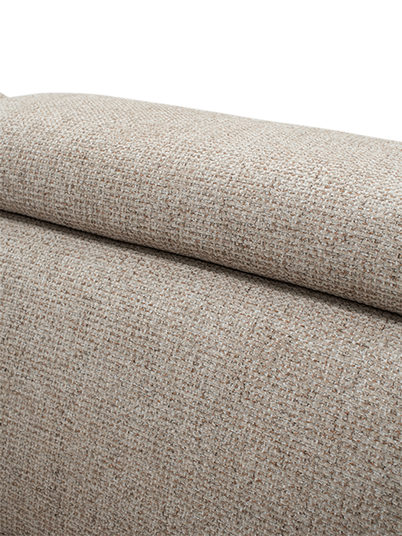 De combinatie van rechte lijnen en afgeronde hoeken geeft de sofa een elegante, evenwichtige vorm. De rijke structuur van de Bian Beige-stof voelt aangenaam aan en benadrukt de kwaliteit van het vakmanschap. Dankzij de diverse opties voor rug- en zitvulling kan de sofa worden afgestemd op jouw persoonlijke voorkeur – van iets steviger tot extra zacht en omhullend.