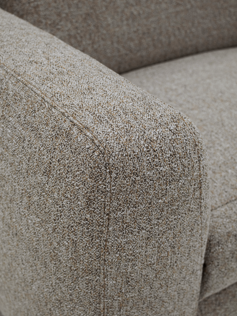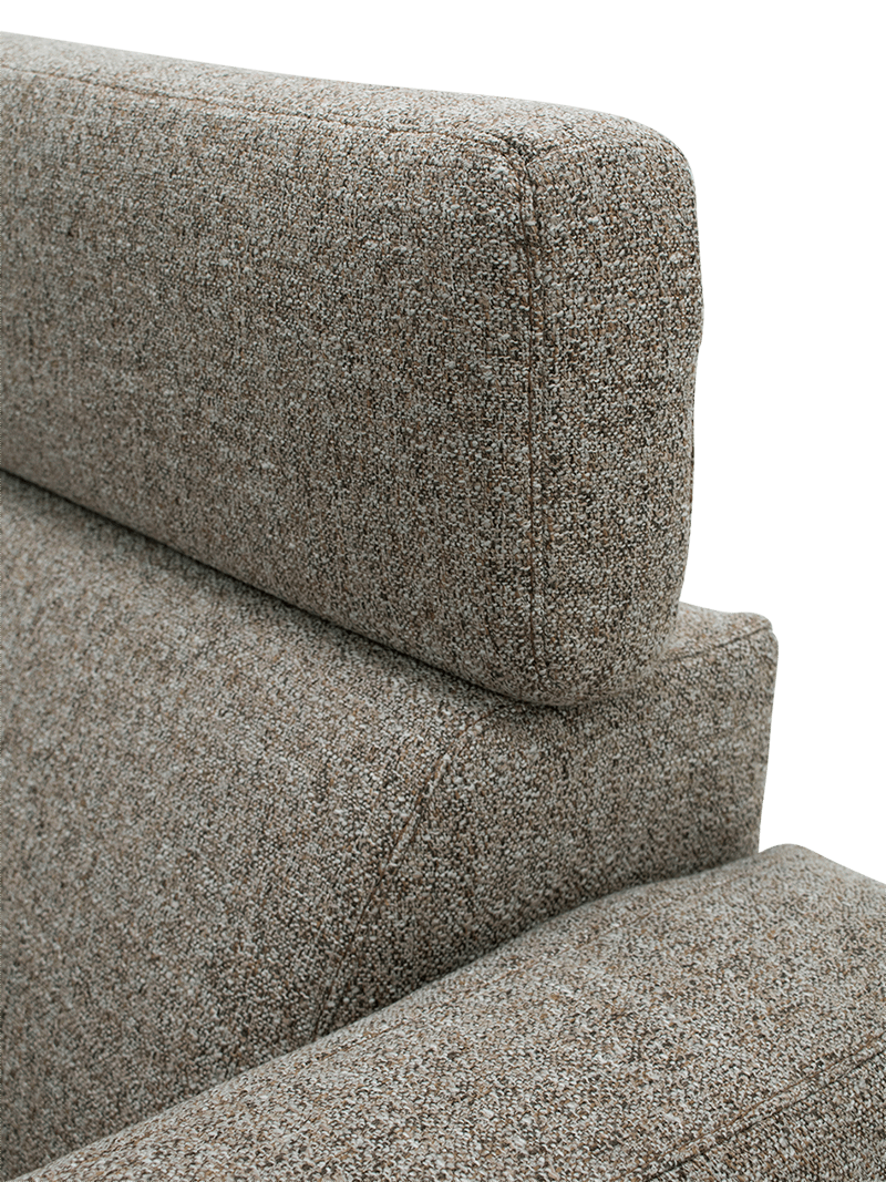 De bruingrijzige stof geeft Titania een warme en uitnodigende look. De fijne textuur zorgt voor een aangenaam gevoel en voegt tegelijk diepte toe aan het geheel. Deze kleurstelling laat zich eenvoudig combineren met zowel lichte als donkere accenten, waardoor de salon perfect aansluit bij een sfeervol modern interieur.