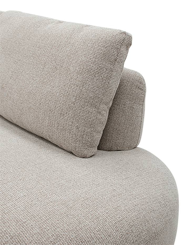 Hoeksalon Thabor valt meteen op door zijn organische vormen en zachte lijnen. De afgeronde hoeken zorgen voor een uitnodigende en eigentijdse look die perfect aansluit bij moderne interieurs. De lichte stof versterkt het gevoel van rust en ruimte in je leefomgeving.