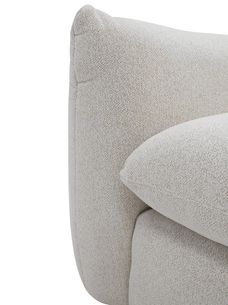 Met zijn afgeronde armleuningen en zachte lijnen heeft de Metis een moderne maar warme uitstraling. De volle vormen geven de zetel een cosy karakter dat perfect past in zowel hedendaagse als meer zachte, natuurlijke interieurs. De extra kussens zorgen niet alleen voor comfort, maar geven het geheel ook een decoratieve en uitnodigende look.