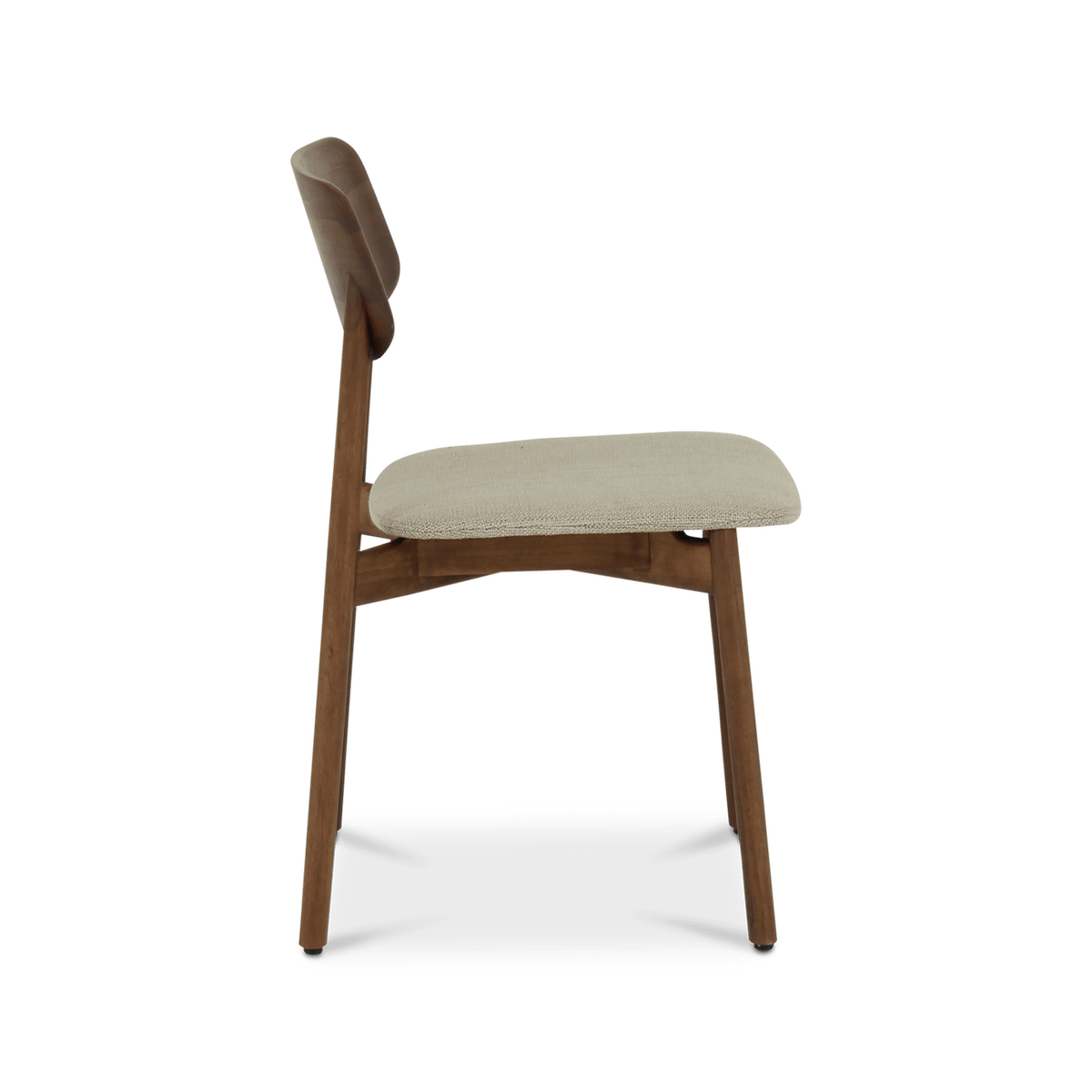 De stoel KIT brengt precies dat wat je zoekt als je houdt van eenvoud met een warme uitstraling. De zachte taupekleurige zitting voelt aangenaam aan en nodigt uit tot lang tafelen, terwijl het walnootkleurige frame zorgt voor een natuurlijke, rustige basis. De licht gebogen rugleuning geeft je net dat beetje extra steun. KIT is een stoel die zich makkelijk laat combineren, of je nu kiest voor een strak Scandinavisch interieur of eerder voor een meer eclectische mix. Hij voegt zich zonder moeite naar de ruimte, maar blijft toch z’n eigen karakter behouden.