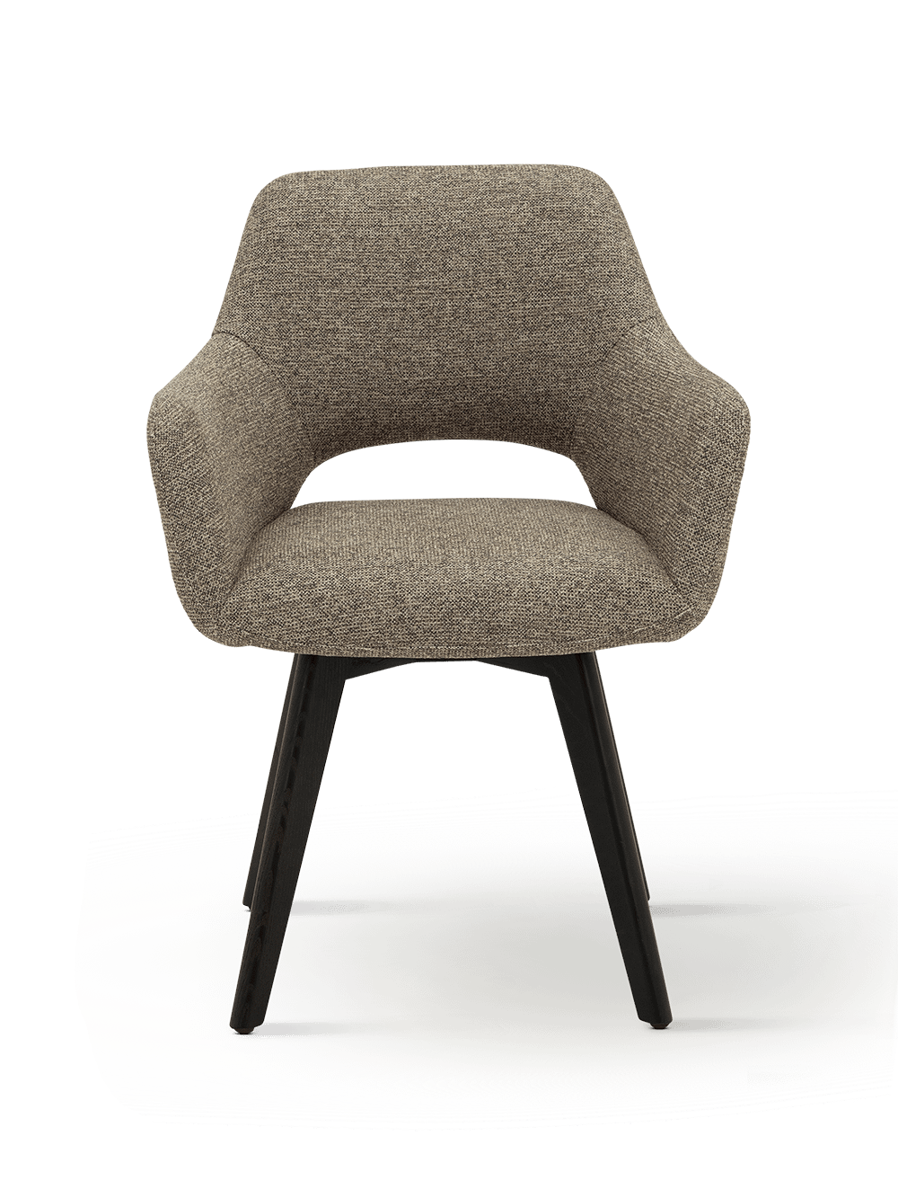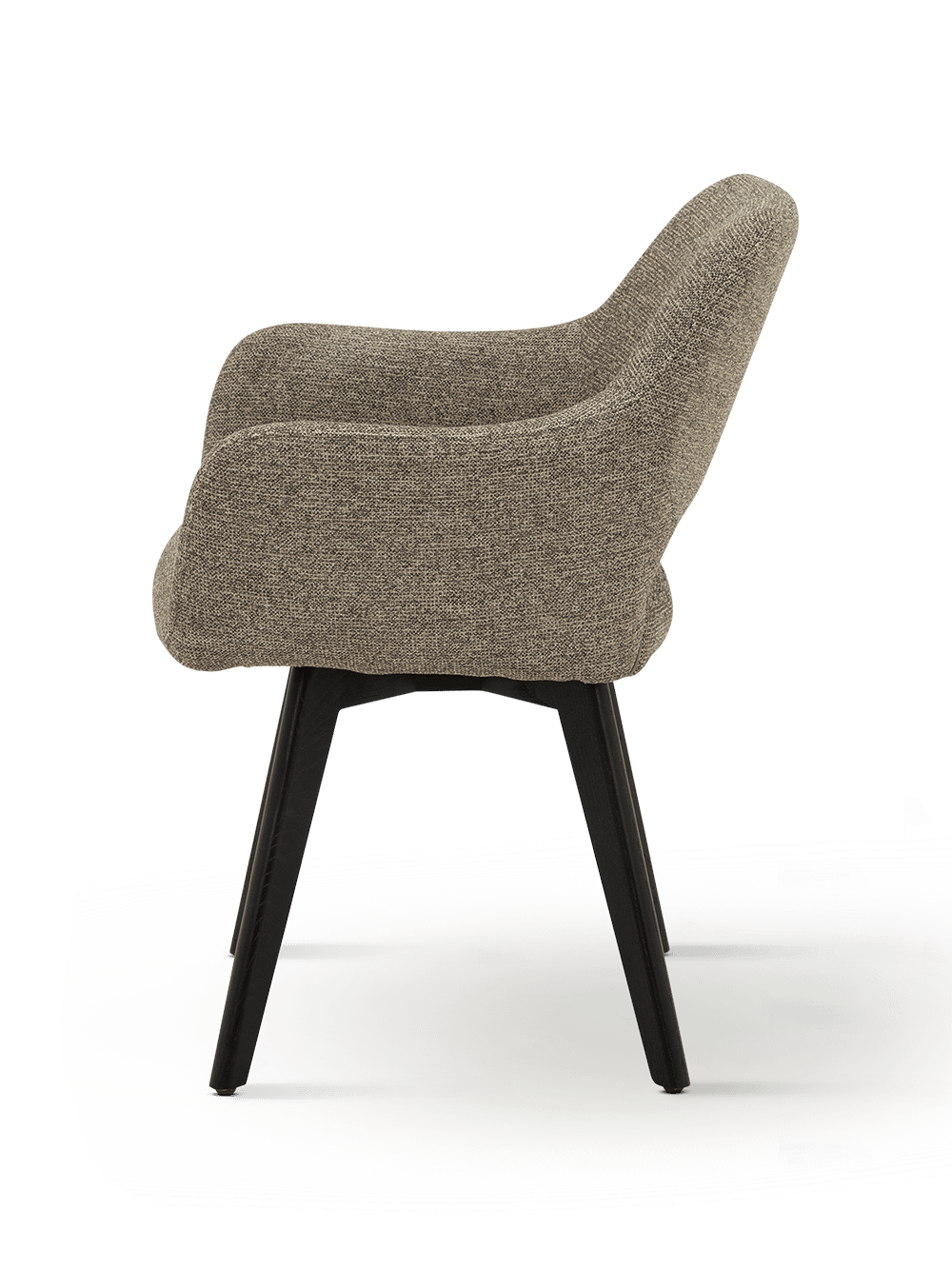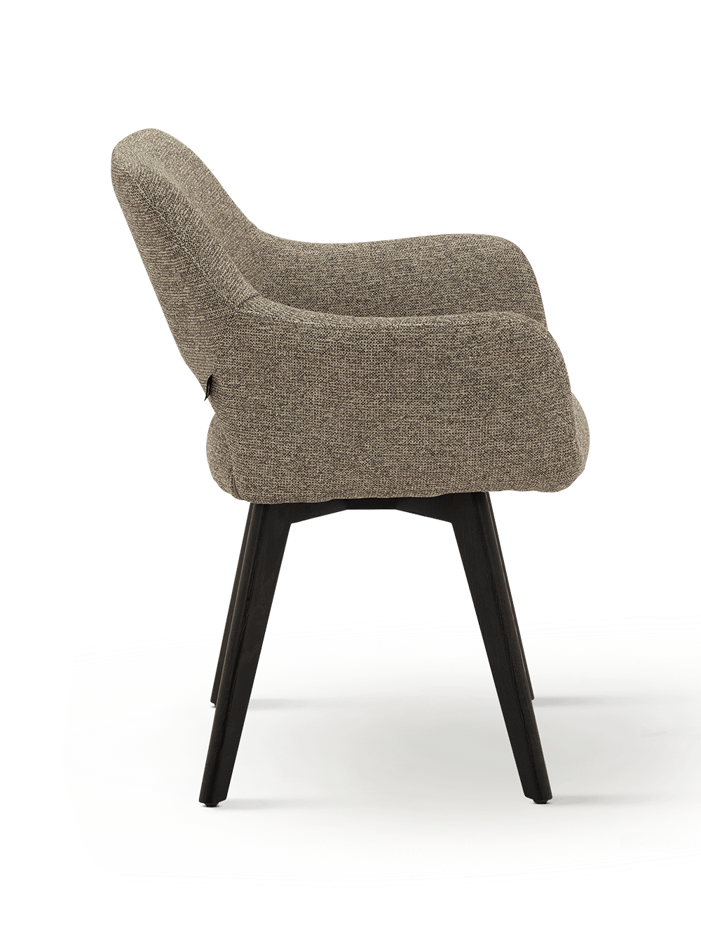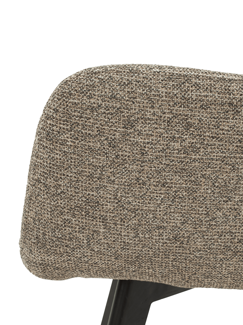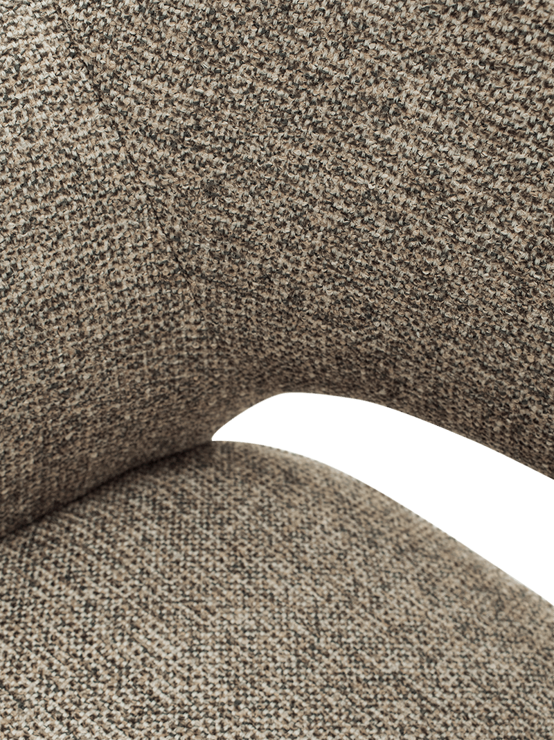 De bekleding in Sneak 124 Shitake zorgt voor een warme en natuurlijke look met een verfijnde textuur. In combinatie met het onderstel in ash espresso krijgt de stoel extra diepte en karakter.