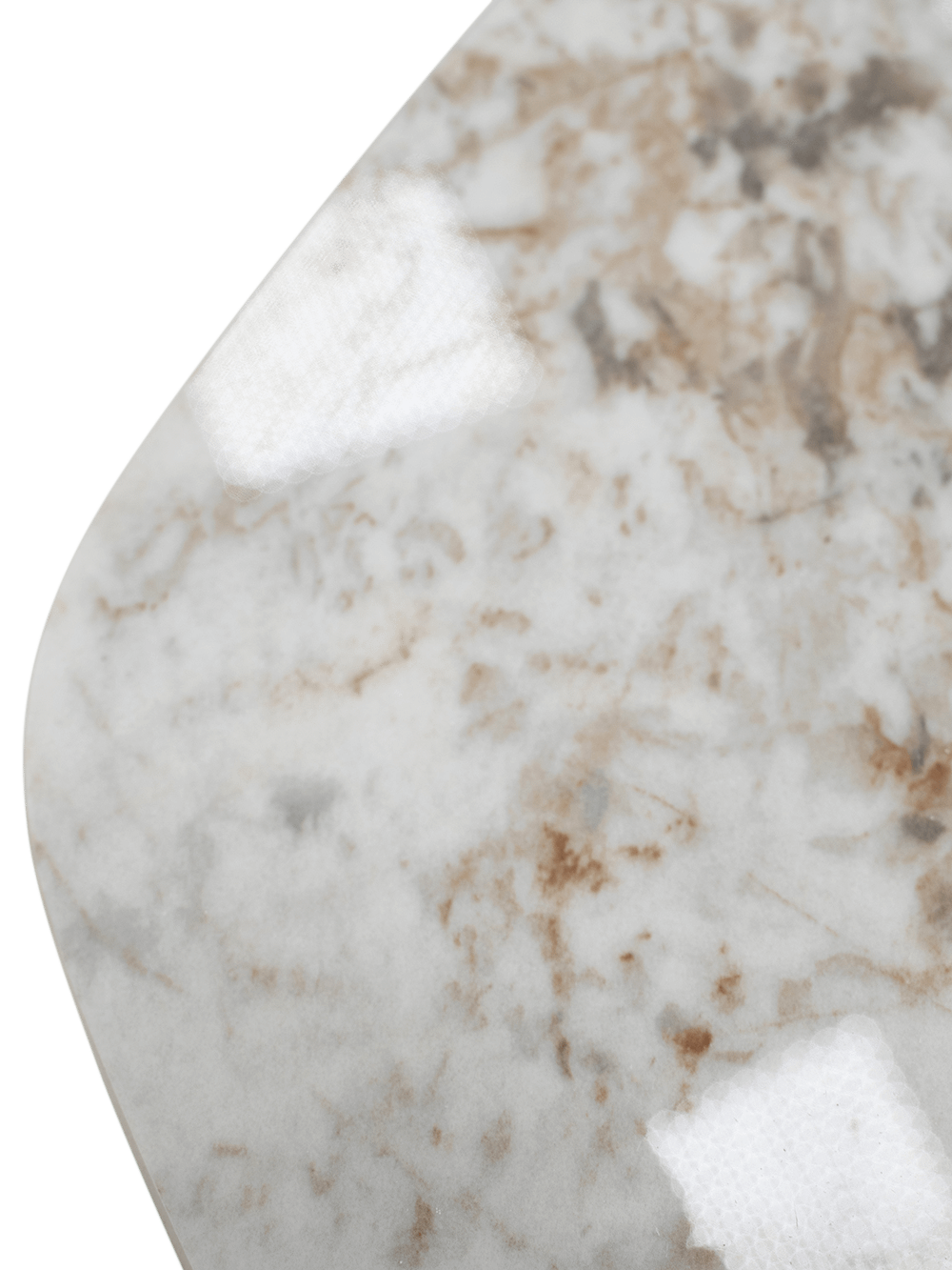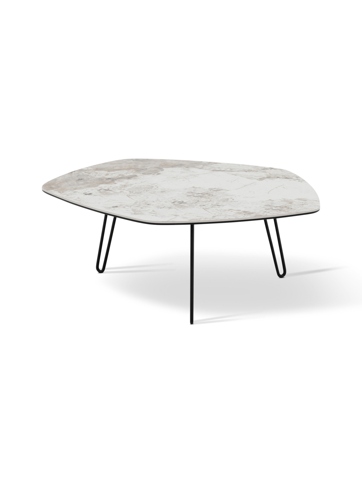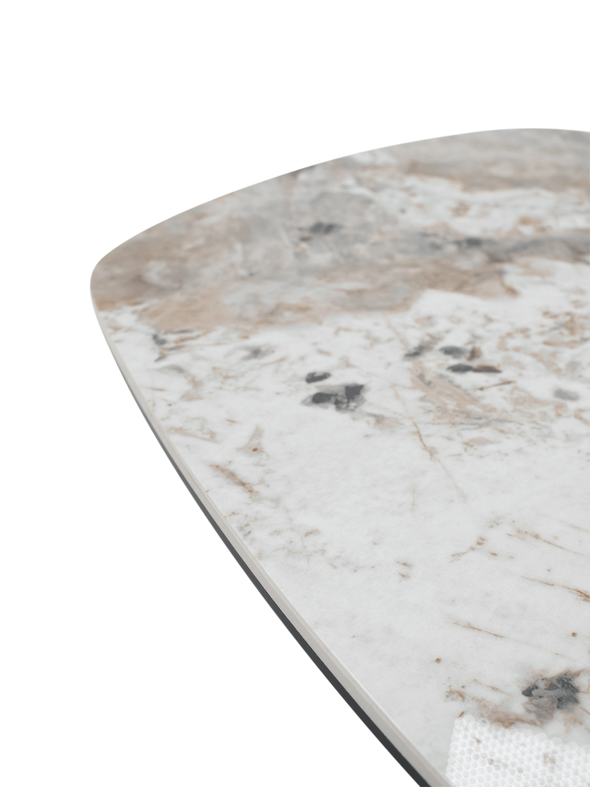 De salontafel Manta van Akante brengt moeiteloos een gevoel van luxe in jouw leefruimte. Het keramieken tafelblad met marmerlook straalt klasse en rust uit, terwijl de zachte, organische vorm zorgt voor een speelse en moderne toets.