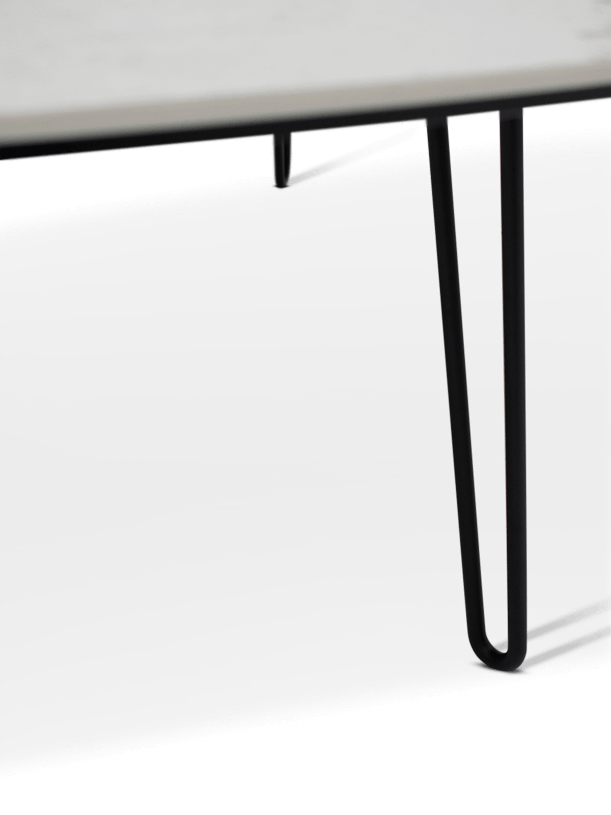 De slanke, zwart metalen poten geven de tafel een luchtige en hedendaagse look. Ze zorgen niet alleen voor een stevige ondersteuning, maar versterken ook het minimalistische karakter van het geheel.