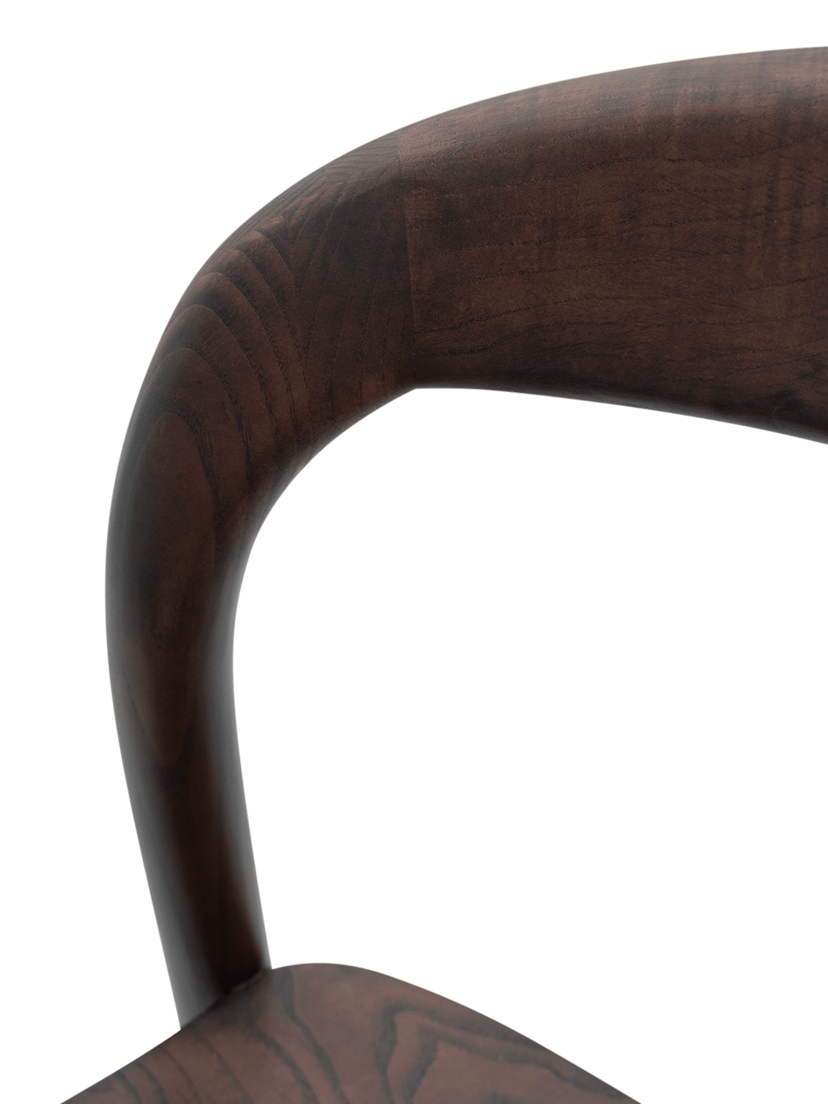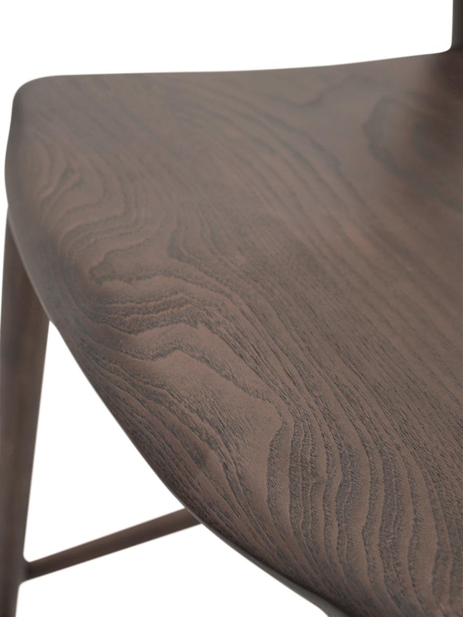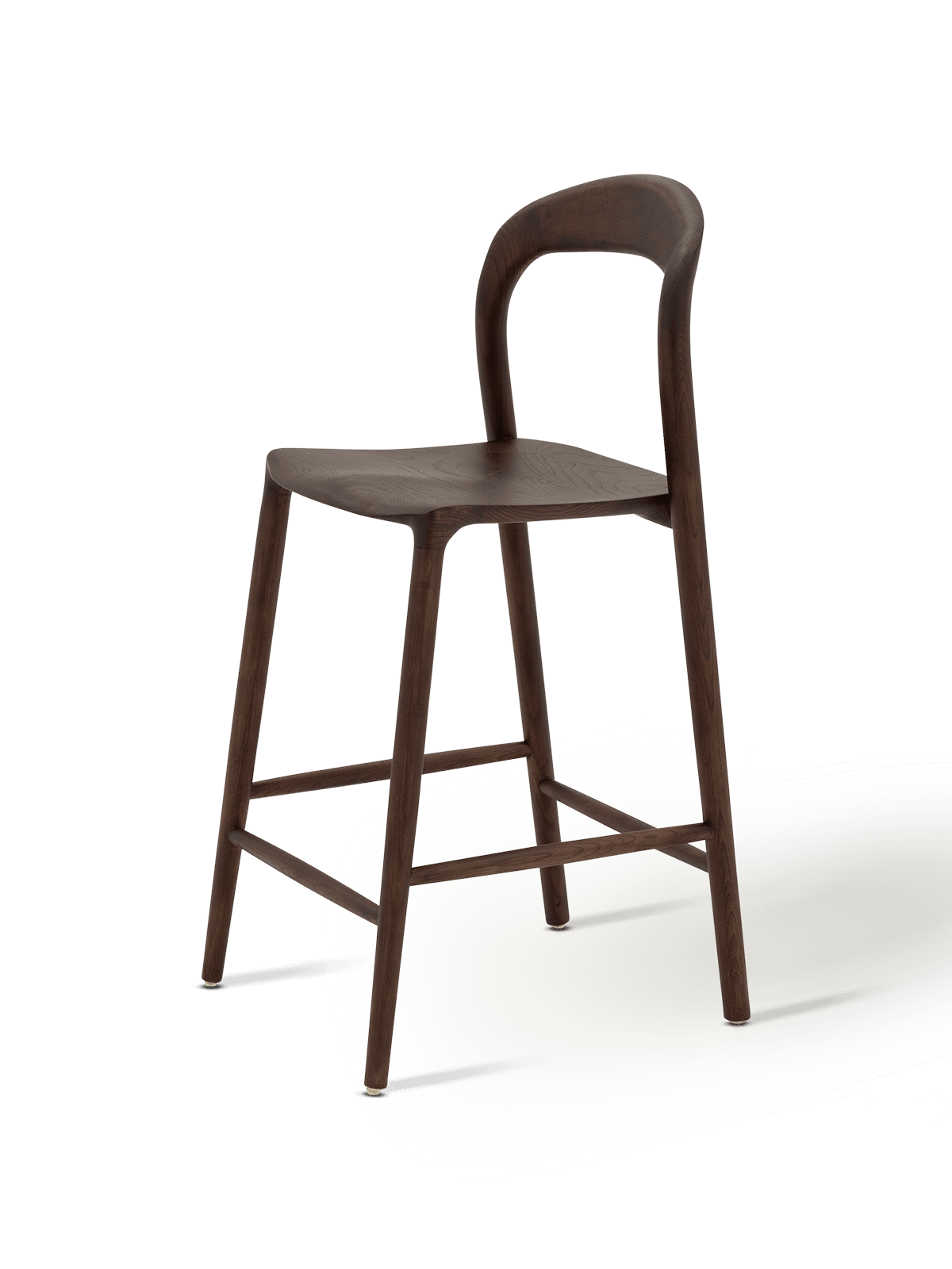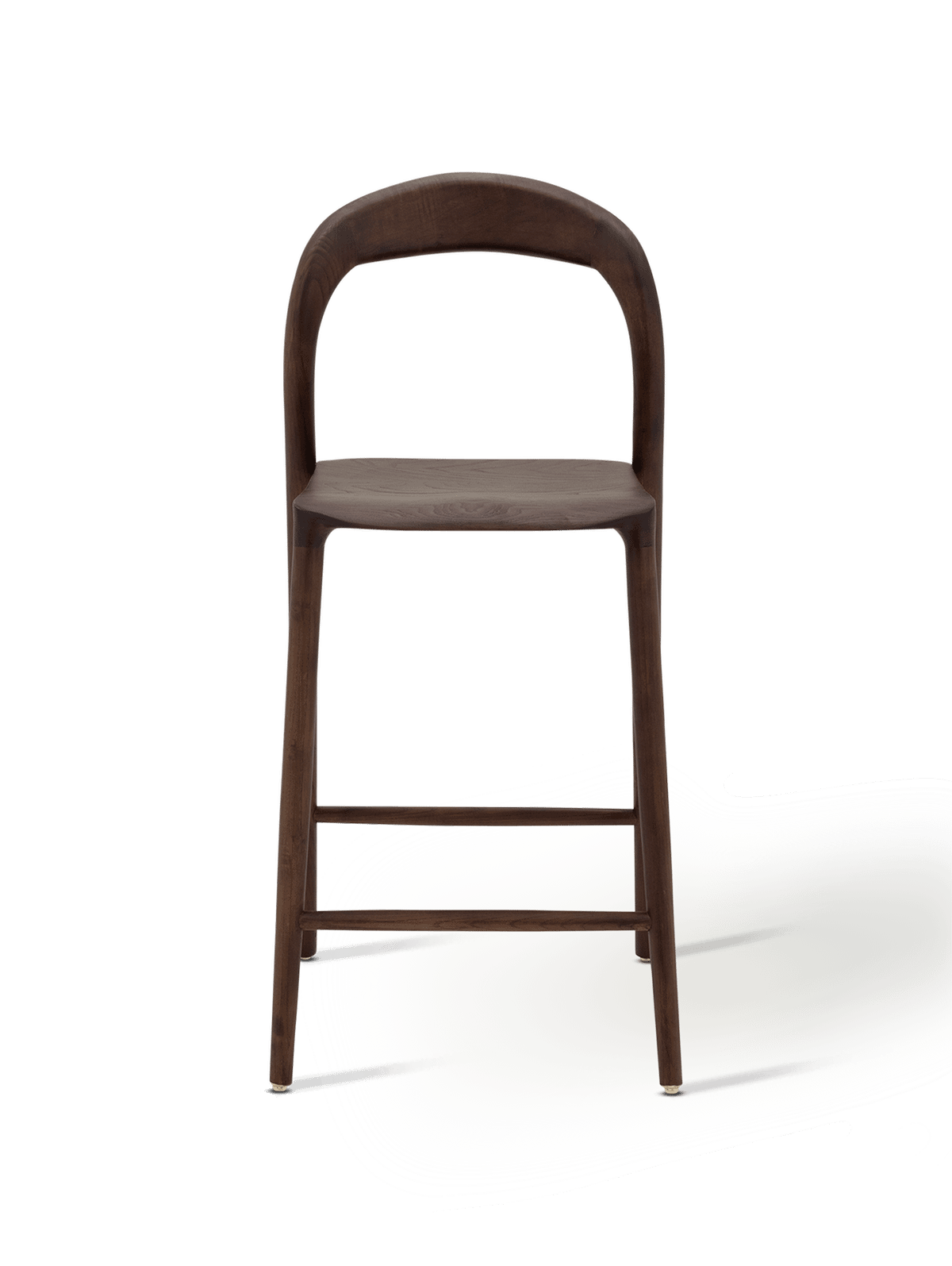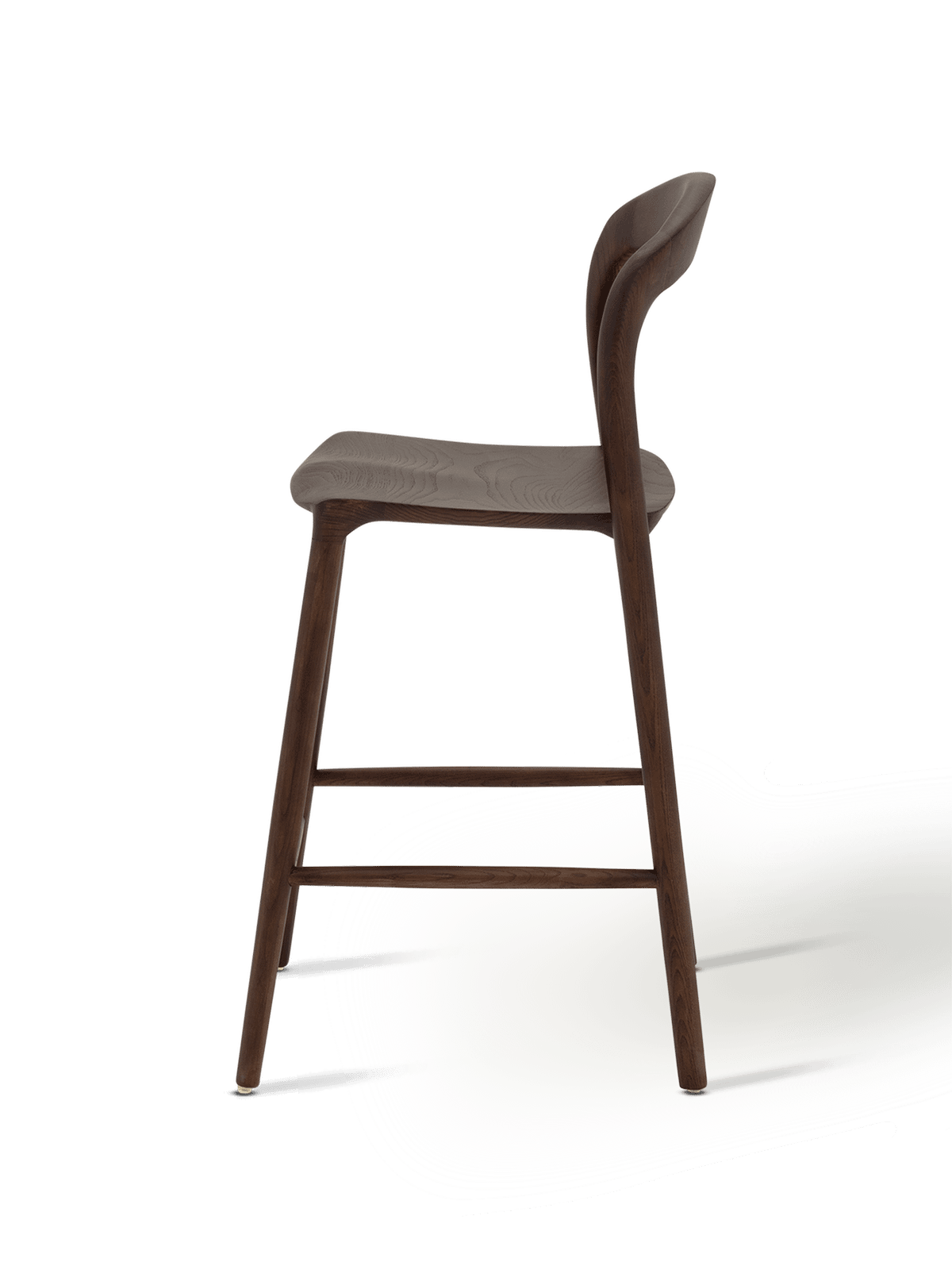 De UMA barstoel in walnootafwerking is een toonbeeld van subtiele luxe. De matte uitstraling van het hout versterkt de zachtheid van het design en maakt hem veelzijdig inzetbaar – van gezellige keukens tot stijlvolle bars.