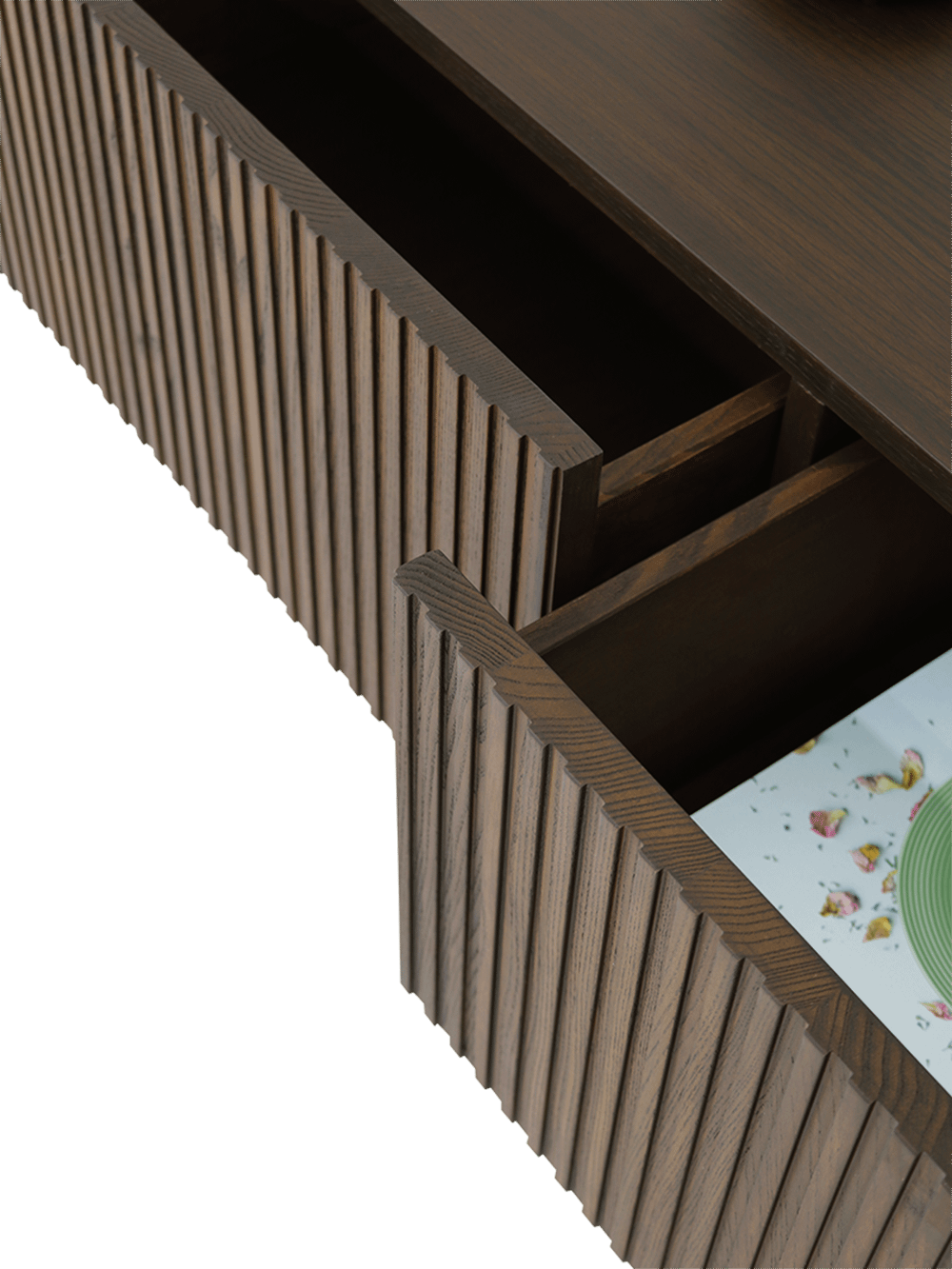 Elke Zero.22 wordt met de hand vervaardigd in Italië, volgens de ambachtelijke traditie van Devina Nais. Het merk staat bekend om zijn meesterlijke houtbewerking, waarbij natuurlijke materialen worden gecombineerd met hedendaagse vormen. Het resultaat is een meubel dat zowel esthetisch als functioneel uitmunt – een blikvanger die rust brengt in de ruimte.