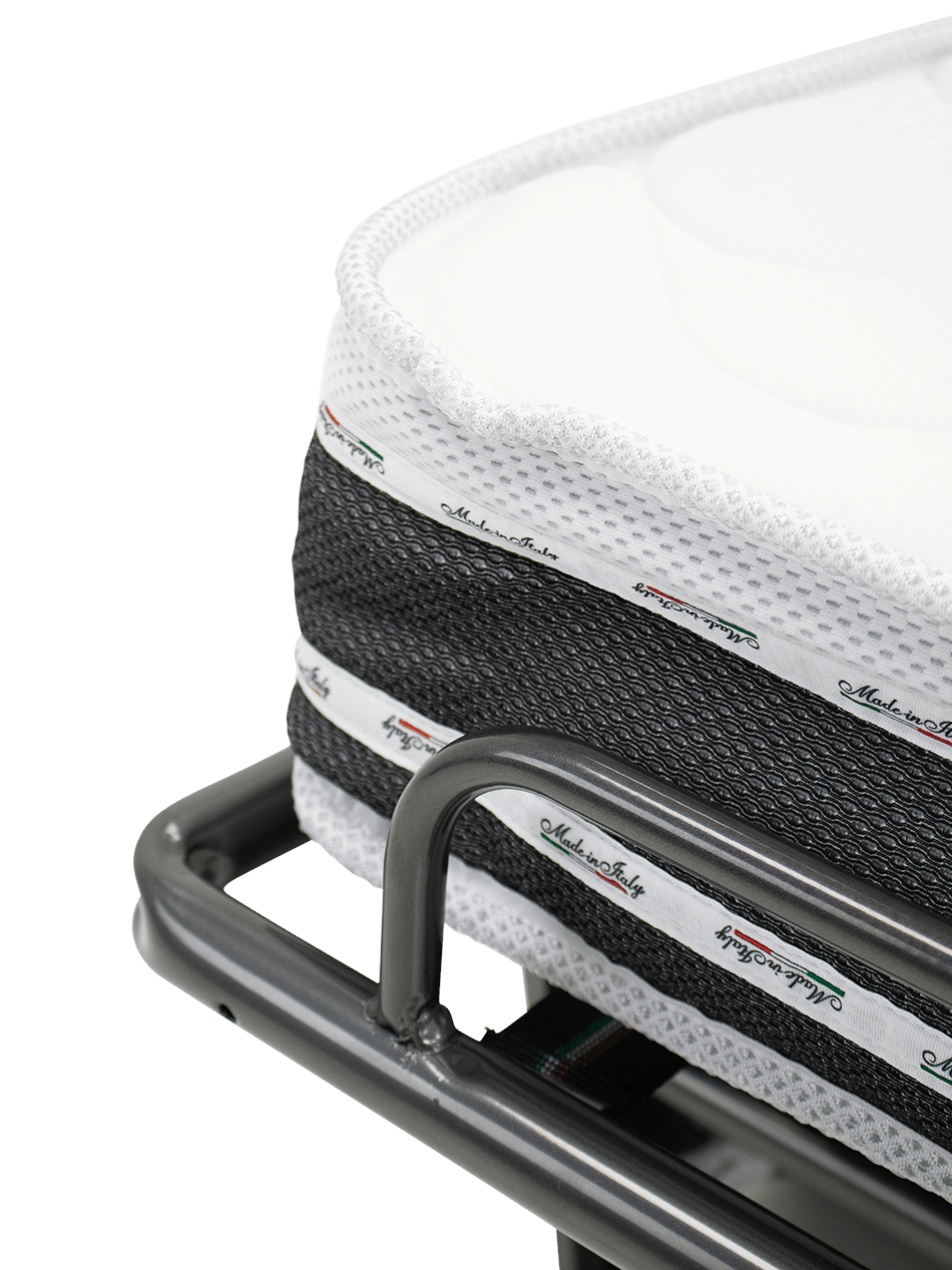 - Bedmechanisme: metalen uitklapmechanisme met geïntegreerde matras