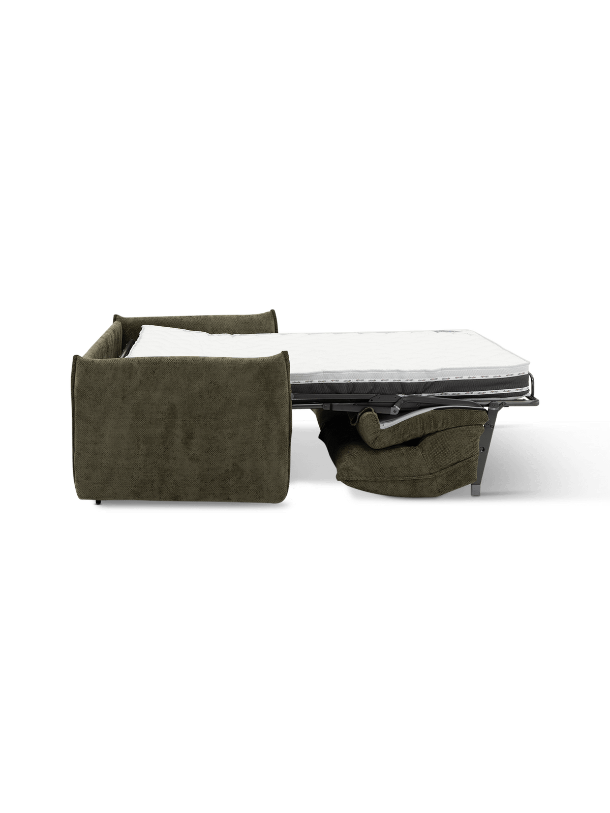 De slaapbank Juvre combineert design met praktische veelzijdigheid. Overdag een stijlvolle 3-zit met een moderne, verfijnde uitstraling; ’s avonds in één handomdraai een comfortabele slaapplaats met een matras van 140 cm breed – ideaal voor logees of kleinere woonruimtes.